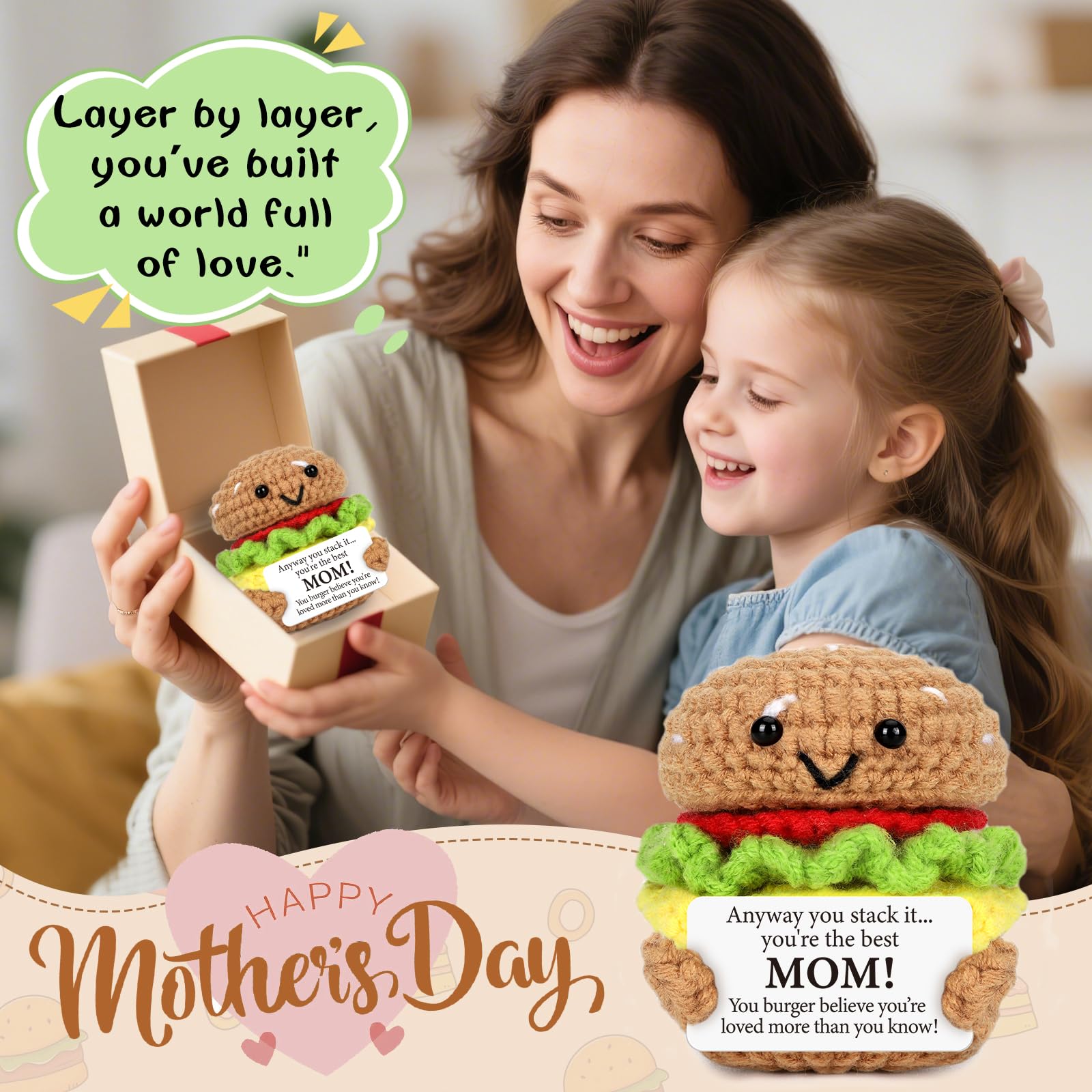 - Q: Does the burger come with any additional items? A: Yes, the crochet burger comes with a sweet card that reminds mom that she is always deeply loved.