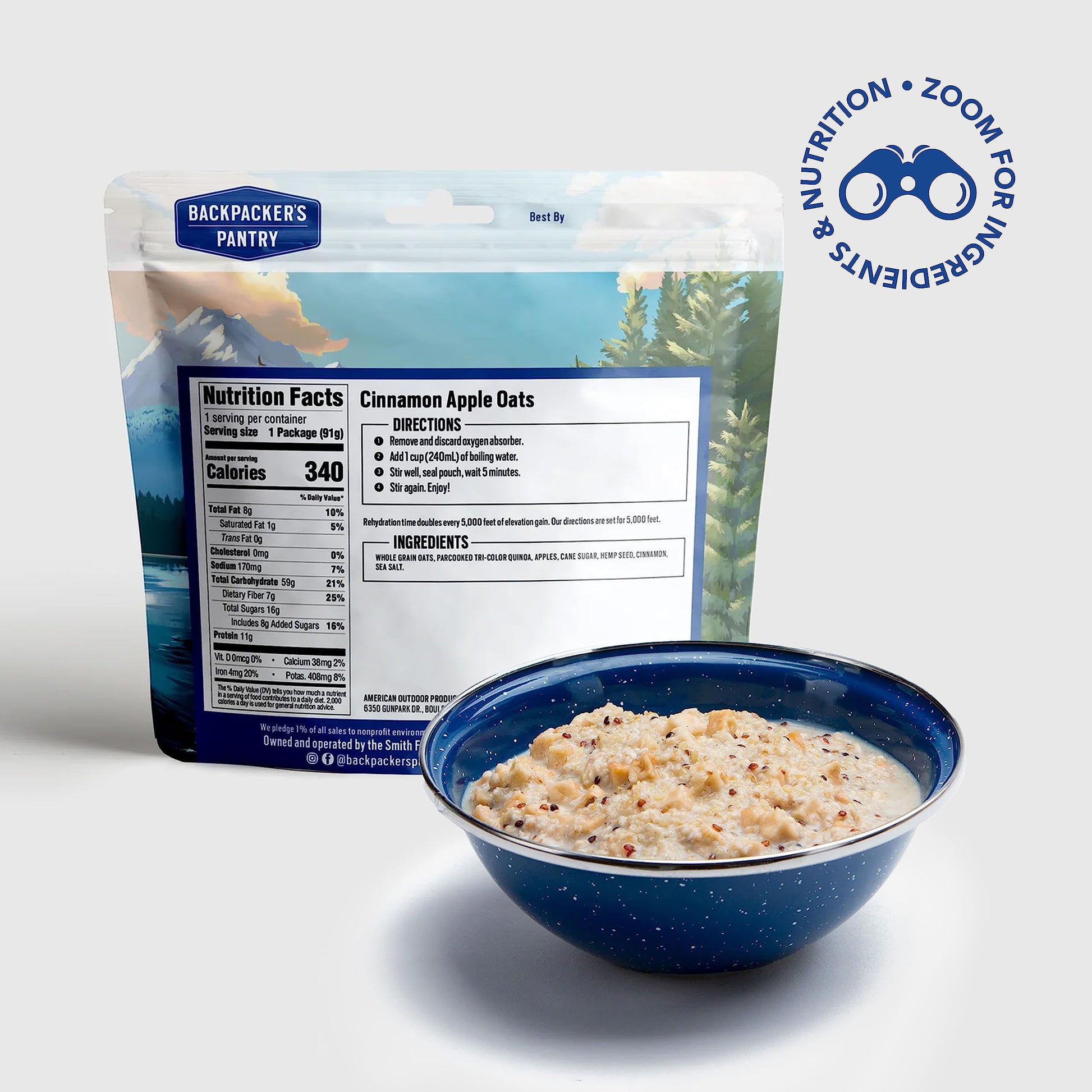 Get Ready For A Day Of Outdoor Activities With A Warm And Hearty Multi-Grain Breakfast Cereal That Will Keep You Satisfied Through Lunch. With Organic Apples, Cinnamon, Oats, And Quinoa, This Is One Healthy Start To Your Day. Breakfast Can Be On The Table In Mere Minutes, Too. Simply Add 1 Cup Of Boiling Water To The Mix, Stir Well, Cover, And Let Everything Sit For 5 Minutes. Give It A Final Stir, And Breakfast Is Served. Start Your Day The Organic, High Protein, High Fiber Way With Backpackers Pantry Cinnamon Apple Oats & Quinoa. The Bestselling Of All Our Breakfast Cereals, This Blows Off The Shelves At Rei. This Easy To Prepare, Convenient Breakfast For One Is A Winner Any Time Of Day. Backpackers Pantry Organic Cinnamon Apple Oats & Quinoa Is A Non-Gmo And Hearty Multigrain Breakfast Cereal For One Person. Ten Year Shelf Life Lets You Be Prepared For Any Emergency. Soy Free. Loved By Students, Climbers, Mountaineers & Hunters Alike. Just Add One Cup Of Hot Water & Start To Smile As The Warm Smell Of Cinnamon Hits Your Nose. Easy To Pack And Compact, This One Serving Pouch Is Perfect For Bike Touring Too. Made With Rbst-Free Whole Milk, Organic Apples, Organic Oats & Organic Quinoa. High Protein & Vegetarian. 10 Grams Of Protein In One Hearty Serving. Hold The Eggs & Bacon!