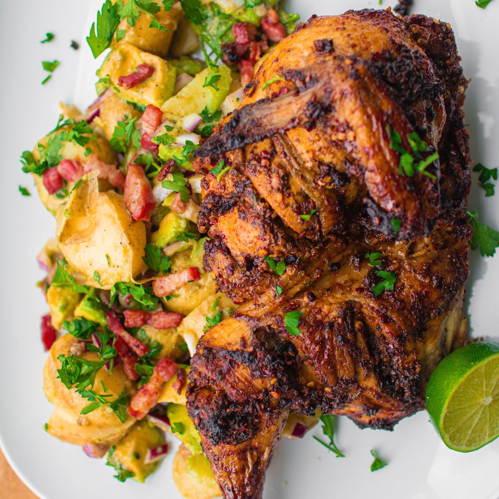 Blend pf spices including Paprika with particulates of Green herb Leaves.