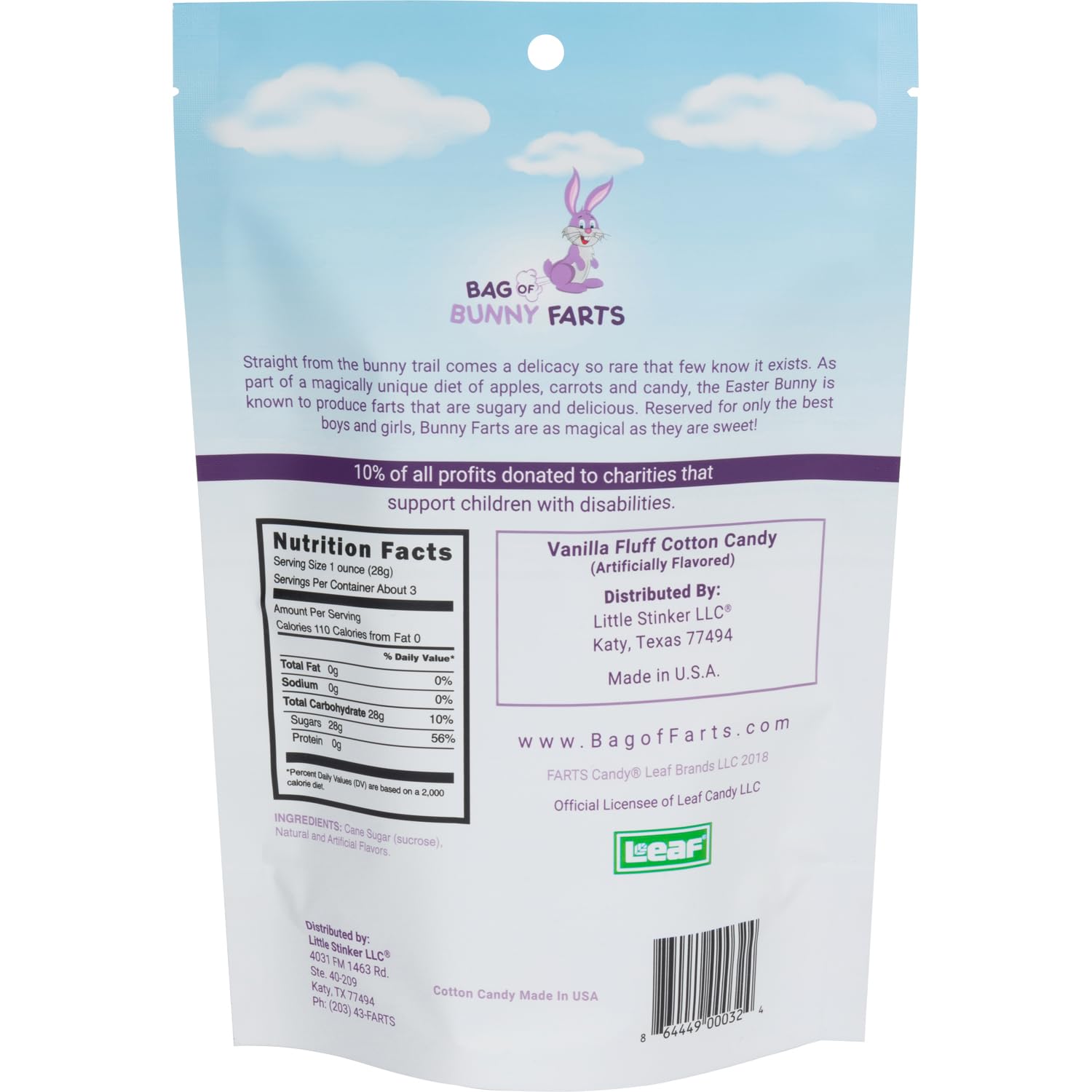 Bag Of Bunny Farts Vanilla Cotton Candy Funny Easter Basket Stuffer For All Ages Unique Birthday For Friends, Mom, Dad, Girl, Boy Gag Gift, 3 Ounces / 1 Pack