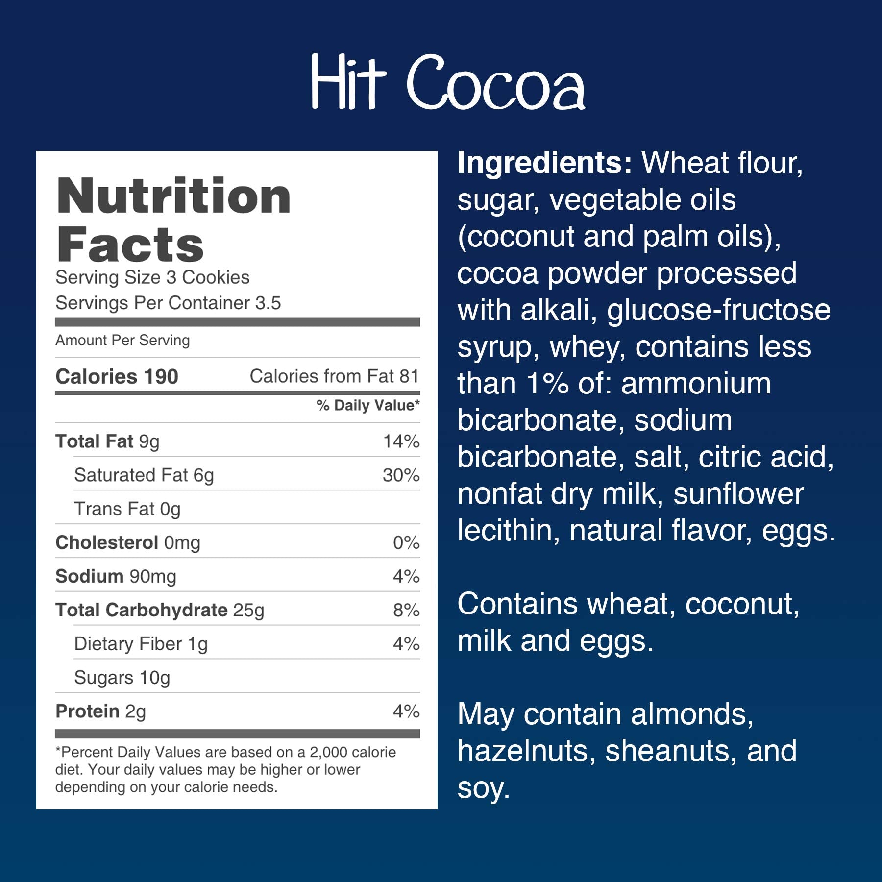 Q: What are Bahlsen Hit Chocolate Filled Sandwich Cookies made of?A: Bahlsen Hit Chocolate Filled Sandwich Cookies feature a crisp golden biscuit filled with a rich cocoa crème. The ingredients include wheat, coconut, milk, and eggs, while being free from preservatives, artificial colorings, and genetically modified ingredients.