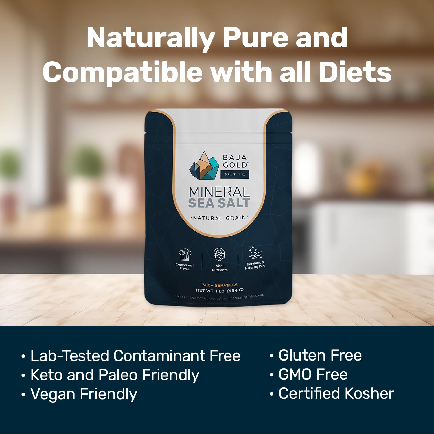 - Q: What are the health benefits of using Baja Gold Mineral Sea Salt? A: Baja Gold Mineral Sea Salt is low in sodium and rich in trace minerals, including magnesium and potassium, which support hydration and electrolyte balance in the body. It is also suitable for various dietary preferences, being organic, kosher, vegan, and gluten-free.