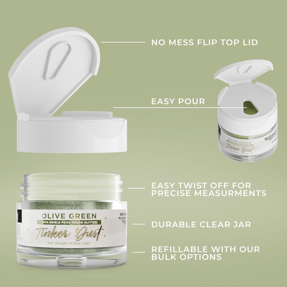 - Q: How do I apply Tinker Dust Edible Glitter to my desserts? A: To apply Tinker Dust, simply sprinkle it over your baked goods or mix it into your frosting or batter. For drinks, stir it into the liquid and watch it create a beautiful shimmery effect. It’s versatile and easy to use!