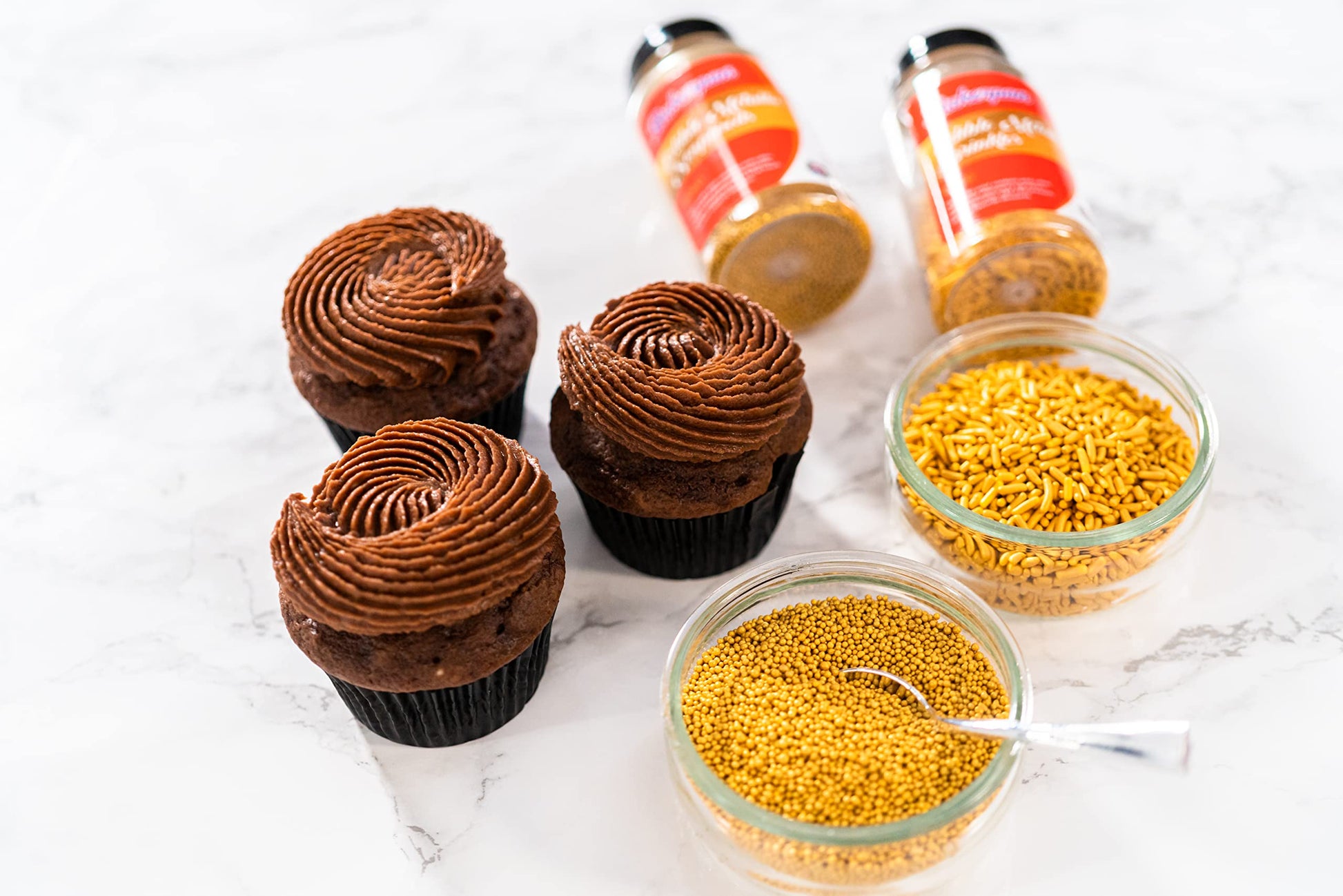 Q: How should I store Bakerpan Gold Sprinkles?A: To maintain their quality, store Bakerpan Gold Sprinkles in a cool, dry place, and ensure the cap is tightly sealed after use to prevent moisture from affecting their texture.