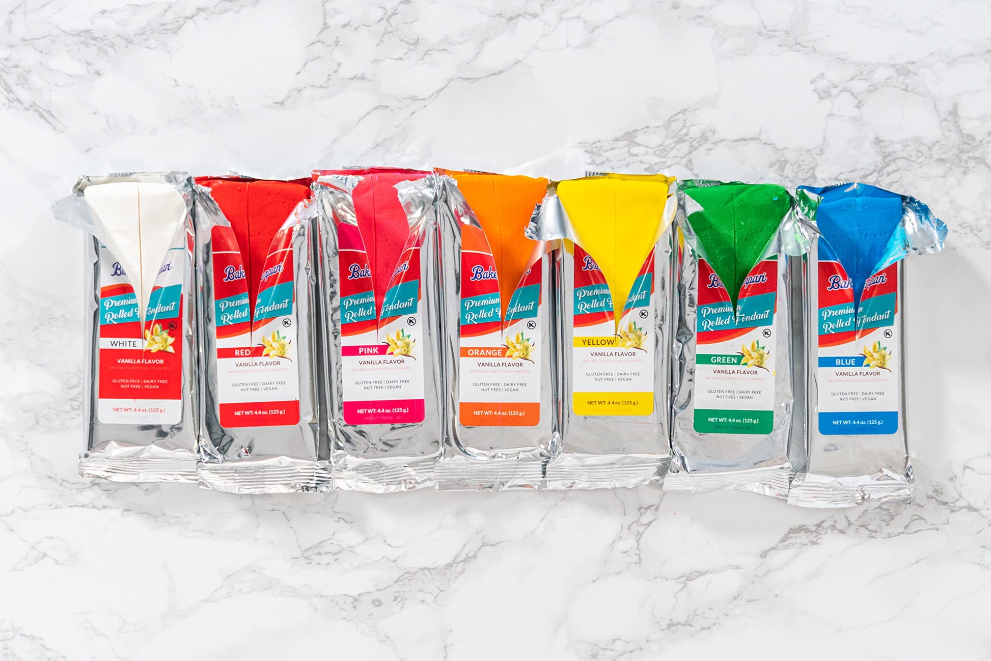 Bakerpan Premium fondant is vegan, gluten free, nut free, dairy free, trans fat free and Kosher. Ready to roll Bakerpan fondant saves you prep time and allows you to get right to decorating without sacrificing taste or quality! Fondant is a type of sugar dough that can be rolled out to cover your cake for a sleek, smooth finish. It’s made predominantly of sugar, corn syrup and our special blend of natural gums that are heated and cooled to produce a dough like consistency.