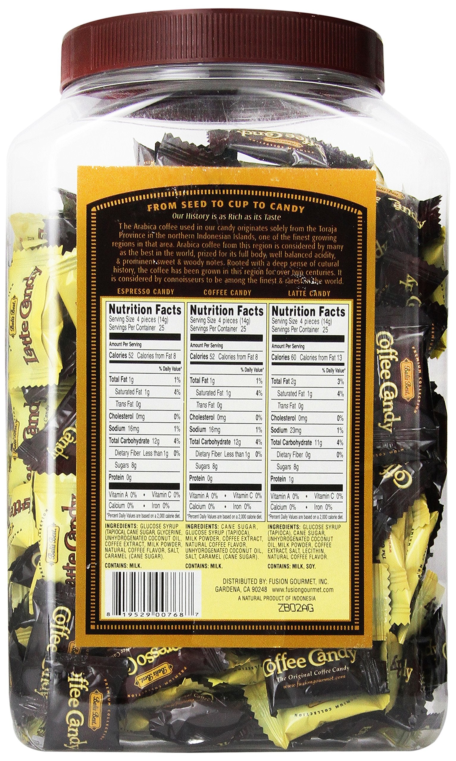 The Arabica Coffee Used In Bali'S Best Candy Originates Solely From The Toraja Province In The Northern Indonesian Islands, One Of The Finest Growing Regions In That Area. Arabica Coffee From This Region Is Considered By Many As The Best In The World, Prized For Its Full Body, Well Balanced Acidity, And Sweet And Woody Notes. Rooted With A Deep Sense Of Cultural History, The Coffee Has Been Grown In This Region For Over Two Centuries. It Is Considered By Connoisseurs To Be Among The Finest And Rarest In The World. Rich, Creamy And Smooth In Taste, These Hard Candies Are Individually Foil-Wrapped To Preserve Freshness. Includes 100 Individually Wrapped Bali'S Best Coffee Candies, 100 Individually Wrapped Bali'S Best Espresso Candies, And 100 Individually Wrapped Bali'S Best Latte Candies All In A Cool Jar!