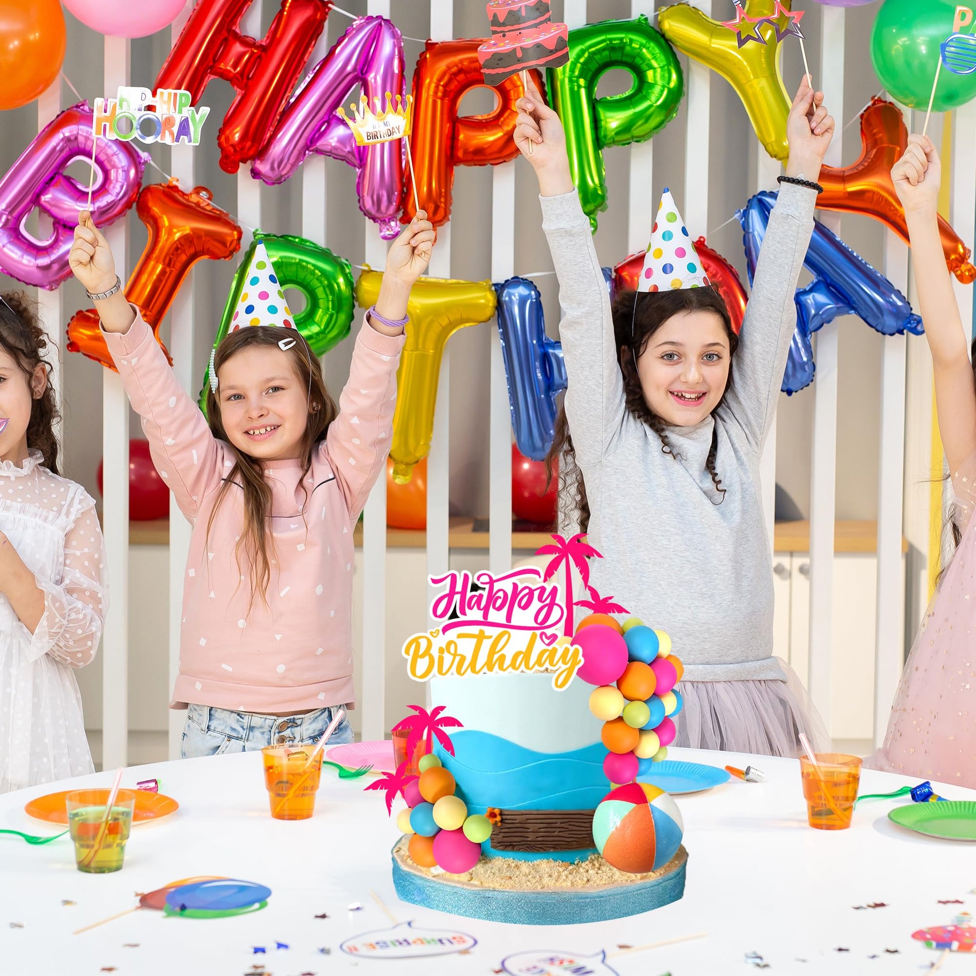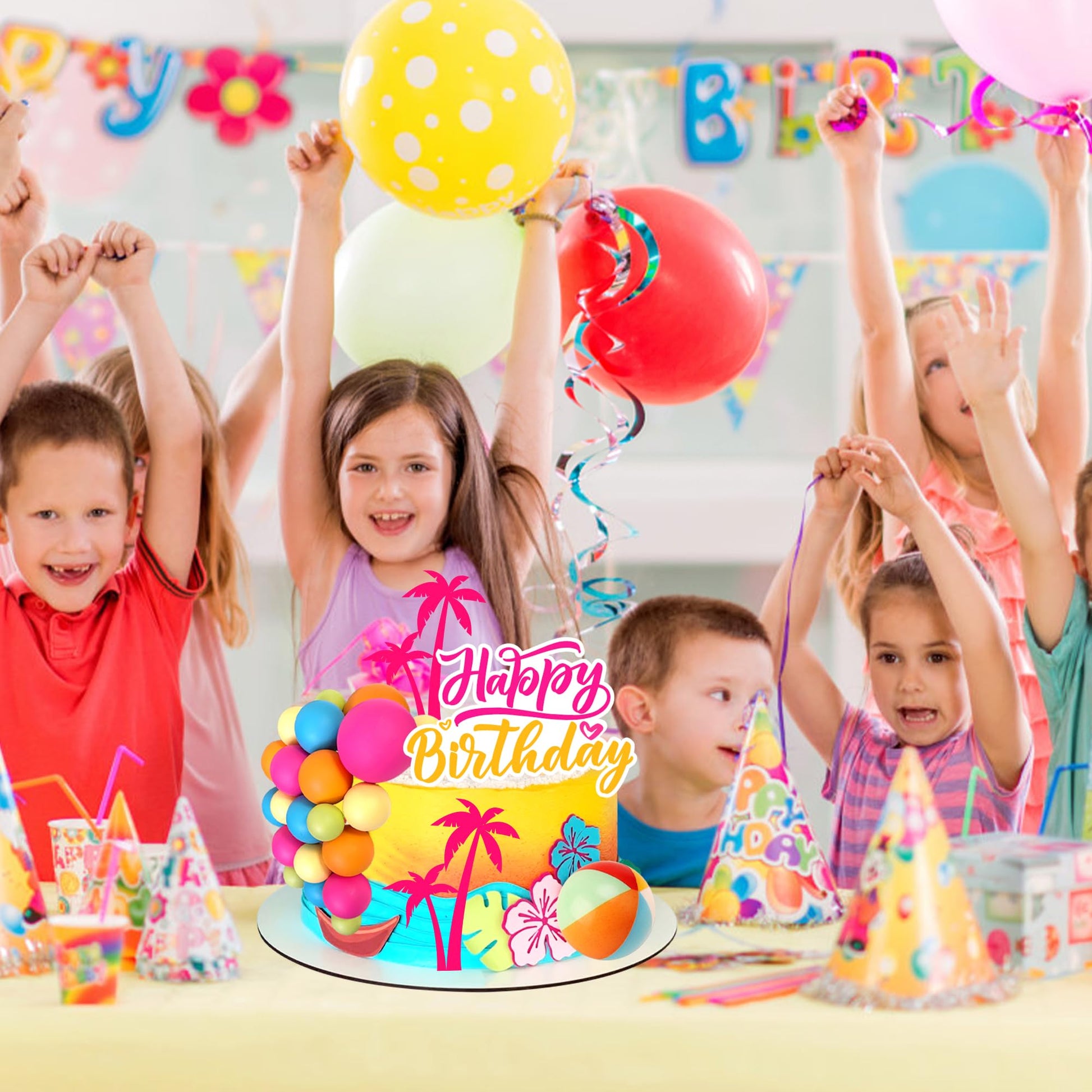 - Q: What are the main features of the Hawaiian-themed cake toppers? A: The Hawaiian-themed cake toppers feature a 31-piece set that includes 2 coconut trees, 27 colorful foam balls, and 1 beach ball, along with a bonus birthday sign. They are designed with vibrant colors and playful Hawaiian elements, making them perfect for adding a festive luau vibe to your birthday cakes, baby shower desserts, or summer party treats.