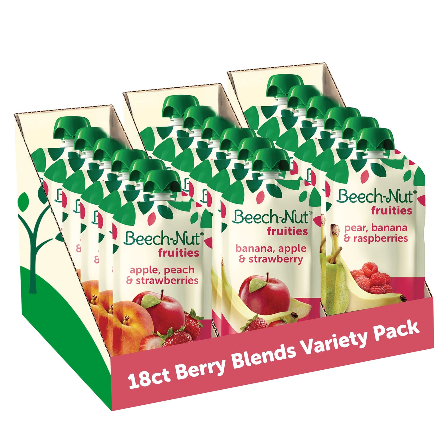 Beech-Nut Baby Food Pouches Variety Pack, Berry Blends Fruit Purees, 3.5 oz (18 Pack)