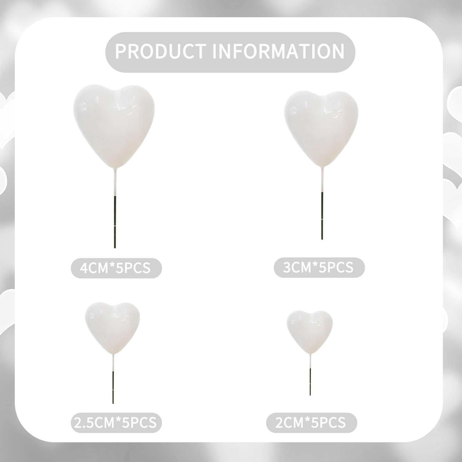 Q: What sizes are included in the BEISHIDA Heart Cake Toppers set?A: The BEISHIDA Heart Cake Toppers set includes 20 pieces of plastic foam balls in four sizes: 0.79 inch, 0.98 inch, 1.18 inch, and 1.57 inch.