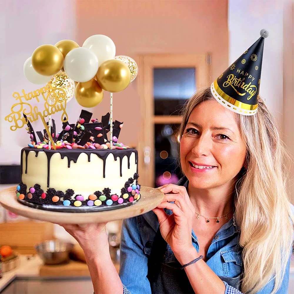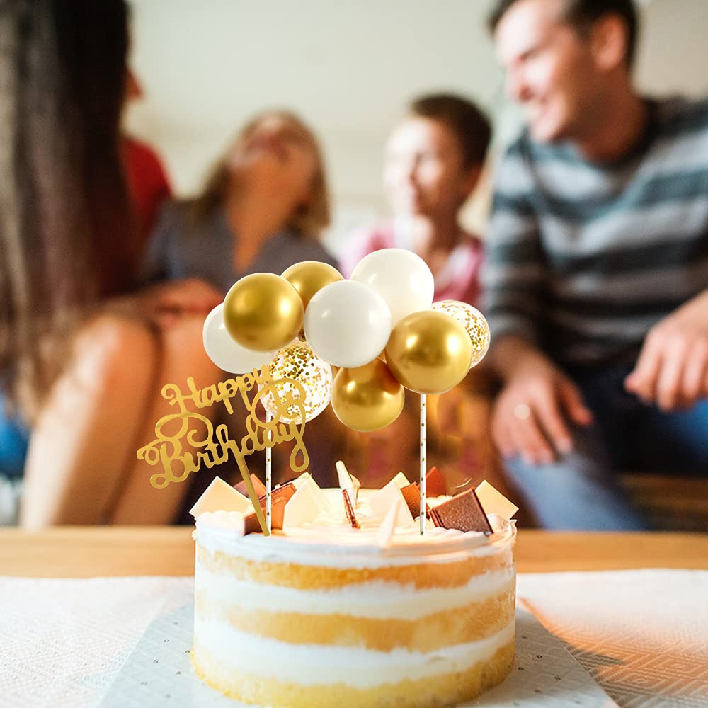 White Gold Balloon Cloud Cake Topper 5 Inch 10Pcs Confetti Metallic Mini Balloon Garland Cake Topper With Happy Birthday Letter Cupcake Topper For Wedding Cake Decorations Bridal Baby Shower Birthday Party The Mini Balloon Garland Cake Topper Makes Your Birthday Cake Look More Beautiful And Adds Some Romantic Vibes To Your Birthday Party. Suitable For Dressing Up Cakes, Cupcakes, Brownies, Ice Cream, Cereal Treats, Cookies, Meats, Cheeses, Beverages. The Balloon Cloud Cupcake Topper Can Be Assembled In Just A Few Minutes. The Cake Topper With A ''Happy Birthday'' Letter Cake Topper Can Also Make A Pleasant Atmosphere And Enlivens Your Birthday Party Or Other Unforgettable Activities. Specification: Each Package Including: 2Pcs 5'' Clear Confetti Balloons, 3Pcs 5'' White Balloons, 5Pcs Metal Gold Balloons, 2 Paper Straws, 1 Pink Ribbon, And 1 ''Happy Birthday'' Letter Cake Topper. Balloon Size: 5 Inch Material: High-Quality Latex Wide Application: Suitable For Baby Showers, Birthday Parties, Weddings, Girls' And Boy'S Birthdays, Bridal Showers, Cake Decorations, Etc.