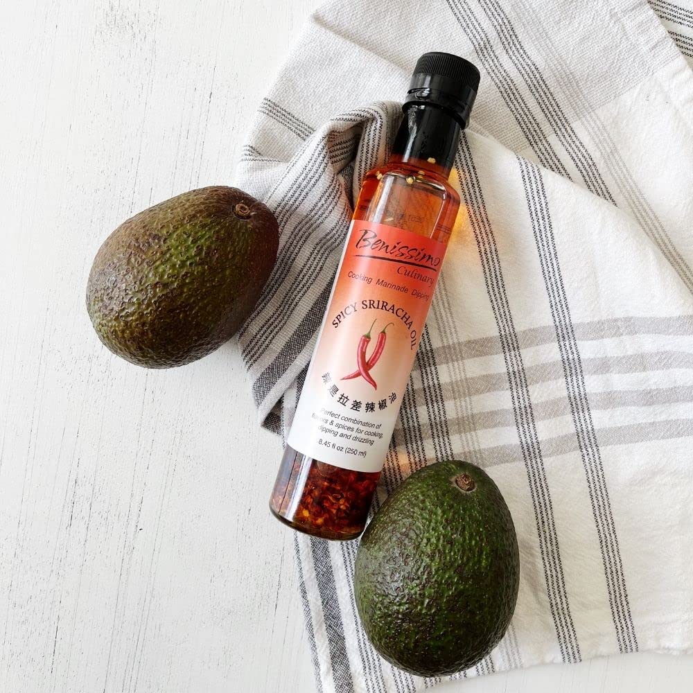 - Q: How can I use Spicy Sriracha Oil as a marinade? A: You can use Benissimo Spicy Sriracha Oil as a marinade by combining it with your choice of proteins or vegetables. The oil infuses a robust flavor while also serving as a finishing touch to enhance the taste of your dishes.
