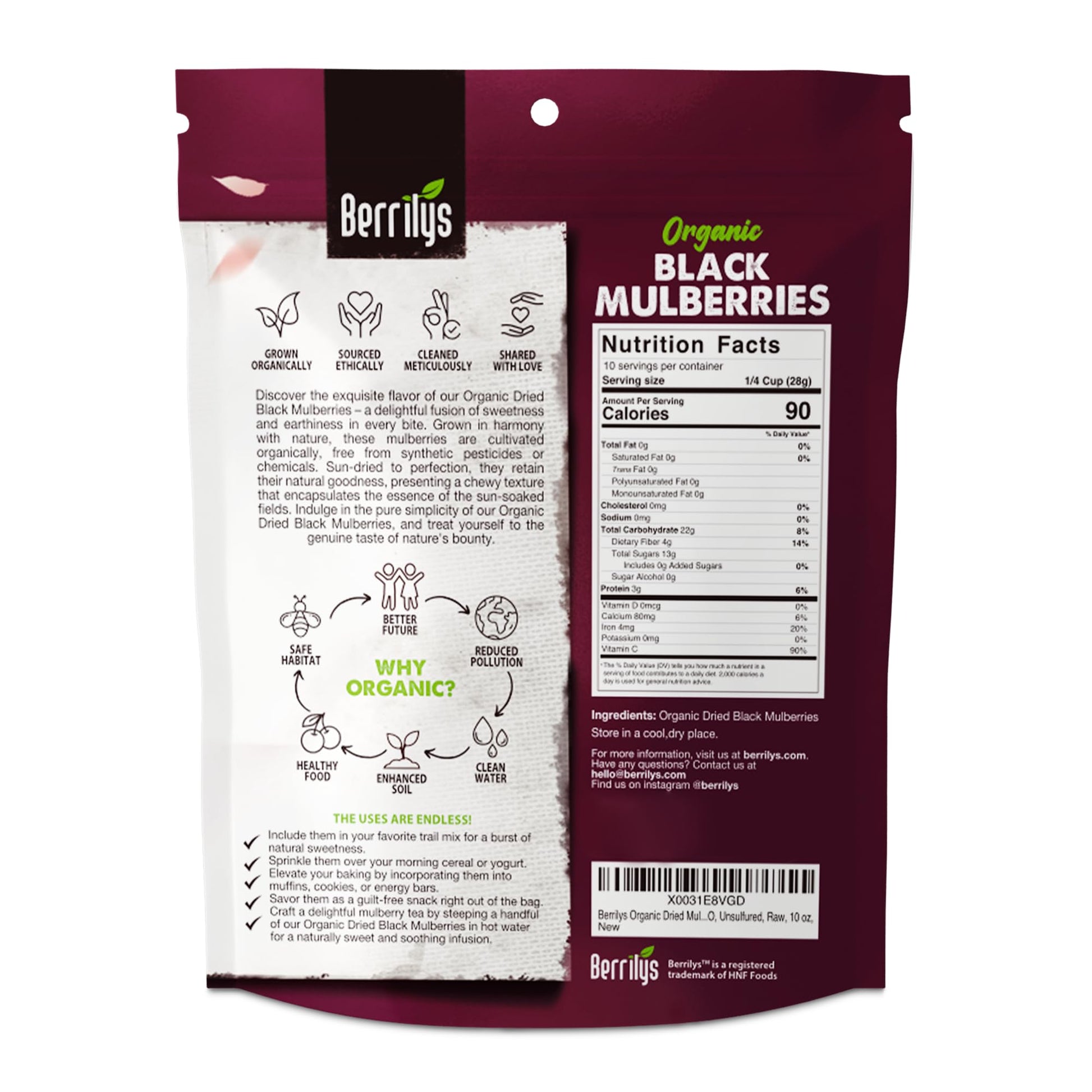 Berrilys Organic Dried Black Mulberries are perfect for anyone seeking a healthy, convenient snack. Whether you are an athlete needing quick energy, a busy professional looking for nutritious options, or a parent wanting to provide healthy snacks for your children, these mulberries are an excellent choice. Incorporate them into your meals or enjoy them on their own for a delightful, healthful treat.