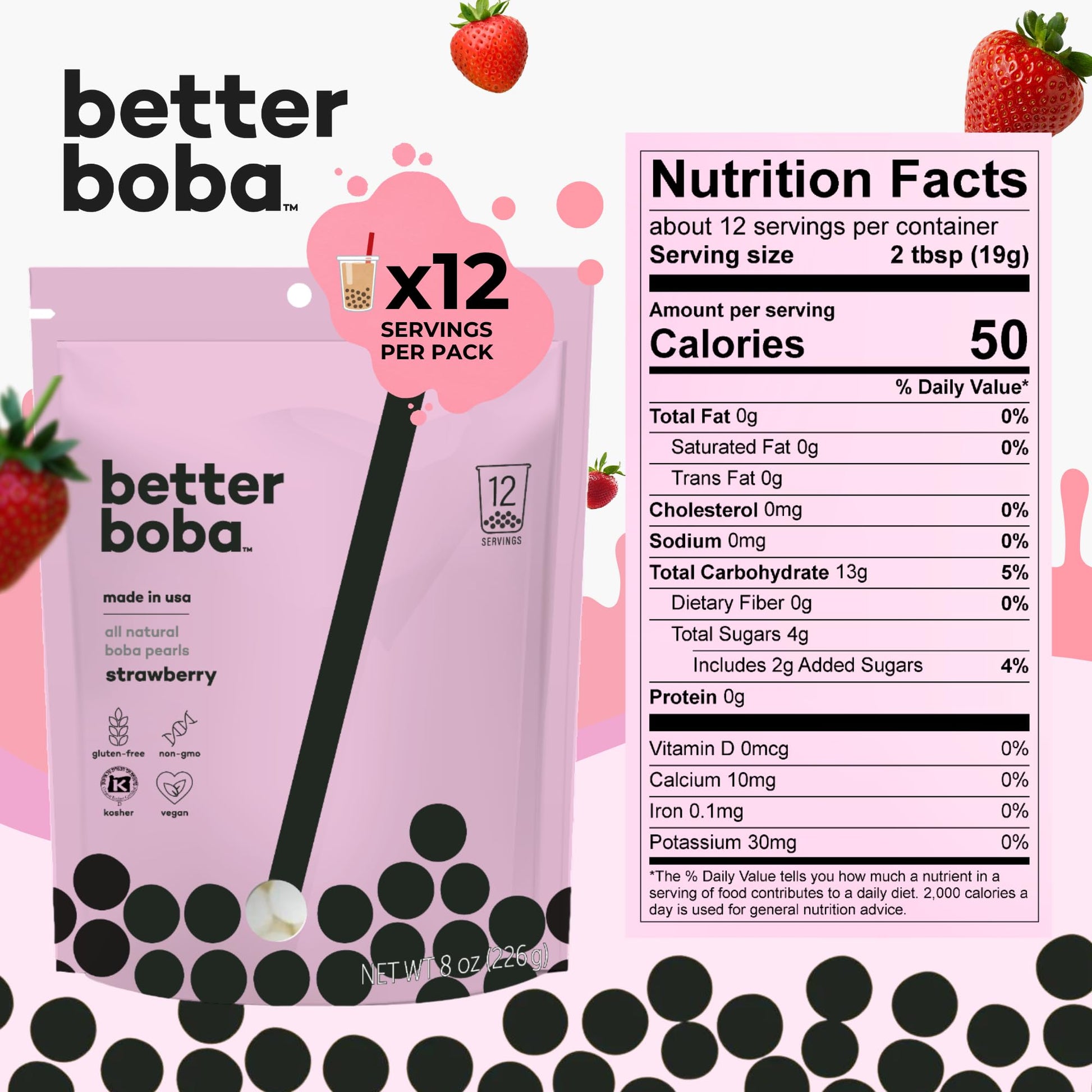 - Q: Are Better Boba Strawberry Boba Pearls free from preservatives? A: Yes, Better Boba Strawberry Boba Pearls are made without preservatives. They use all-natural ingredients, allowing you to enjoy a guilt-free treat packed with flavor and health benefits.