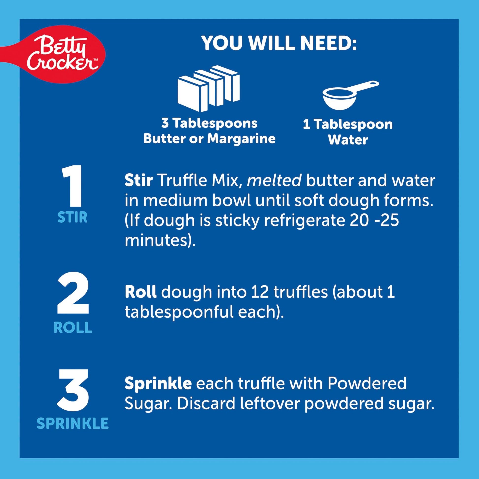 - Q: How do I prepare the Betty Exclusives OREO Truffles Mix? A: To prepare the Betty Exclusives OREO Truffles Mix, simply stir the dry baking mix with butter or margarine and water according to the package directions. After mixing, refrigerate the mixture to set. This easy no-bake process allows you to create delicious OREO Cookie truffles quickly.