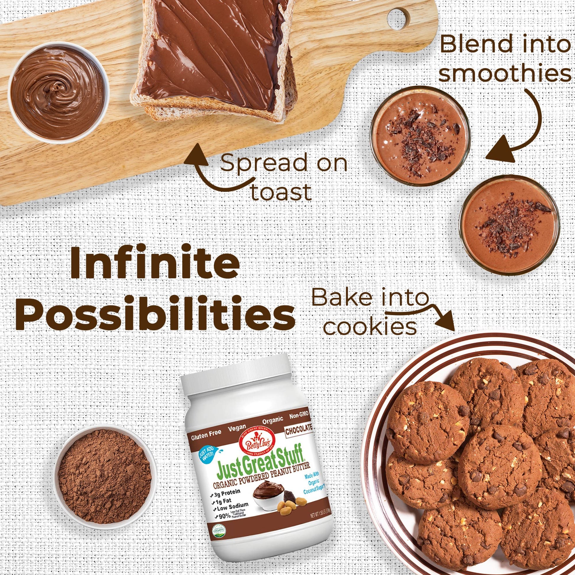 Introducing Betty Lous Just Great Stuff Chocolate Peanut Butter Powder, a delicious and versatile addition to your pantry that allows you to enjoy the rich taste of chocolate and peanut butter with fewer calories and less fat. Ideal for those seeking a tasty yet guilt-free option, this product is perfect for health-conscious individuals and food enthusiasts alike.