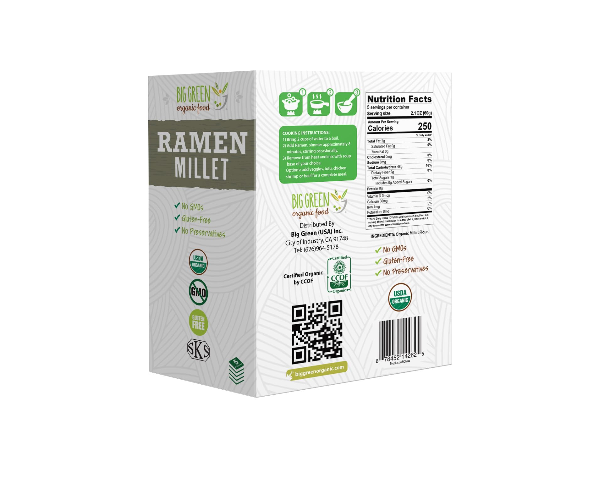 Big Green Organic Food- Organic Millet Ramen, Gluten-Free, Lectin-Free, Non-GMO, Vegan, Wheat and Rice Alternative (2.11 Ounce (