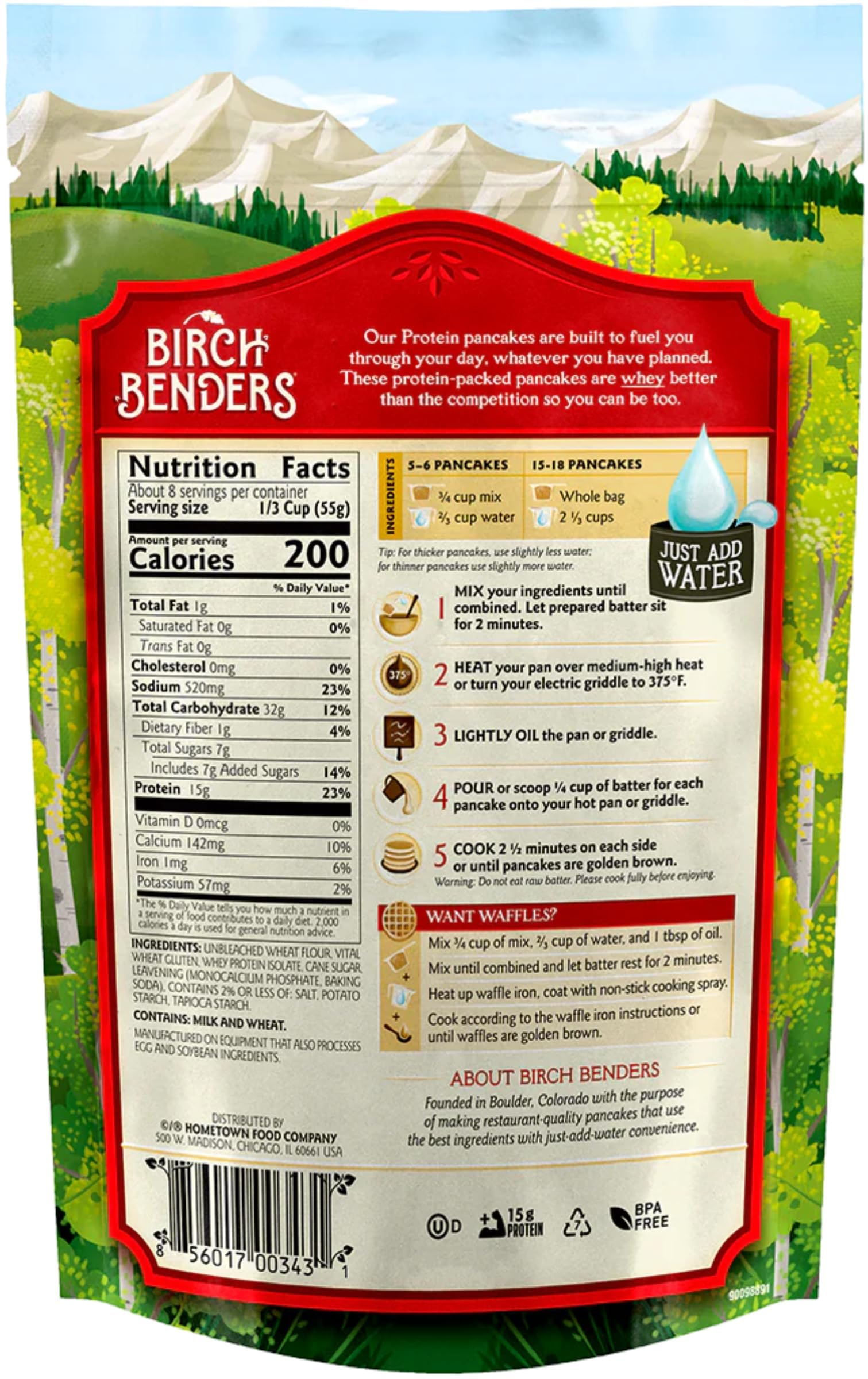 2 - 16 Oz Pouches Of Birch Benders Protein Pancake And Waffle Mixhere At Birch Benders, We Believe That Every Day Can Be A Little Sweeter, More Thoughtful, And That The Best Moments In Life Are Spent Around The Table With The Ones You Love. Were On A Mission To Bring People Together And Make Your Favorite Foods Better. So When We Arent Out Bending Birches Or On A Quest To Hike The Highest Mountain, We Are Out Improving Our Wholesome, High-Quality Ingredient Products. Thank You From The Birch Benders Family, And Remember To Fill Your Day With Deliciousness, Stacks, And Fun! Bpa Free, Kosher, 10G Protein.