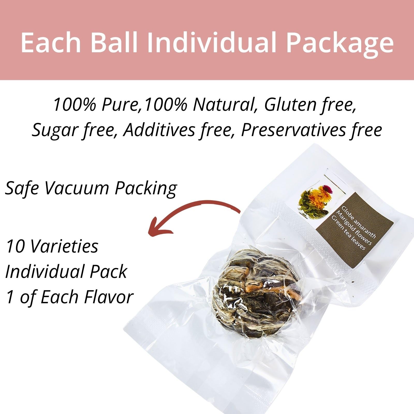 Q: What are blooming tea balls and how do they work?A: Blooming tea balls are handcrafted green tea leaves tied with edible flowers, designed to open up like a flower when steeped in hot water. They create a visually stunning display while infusing your tea with a mild flavor.