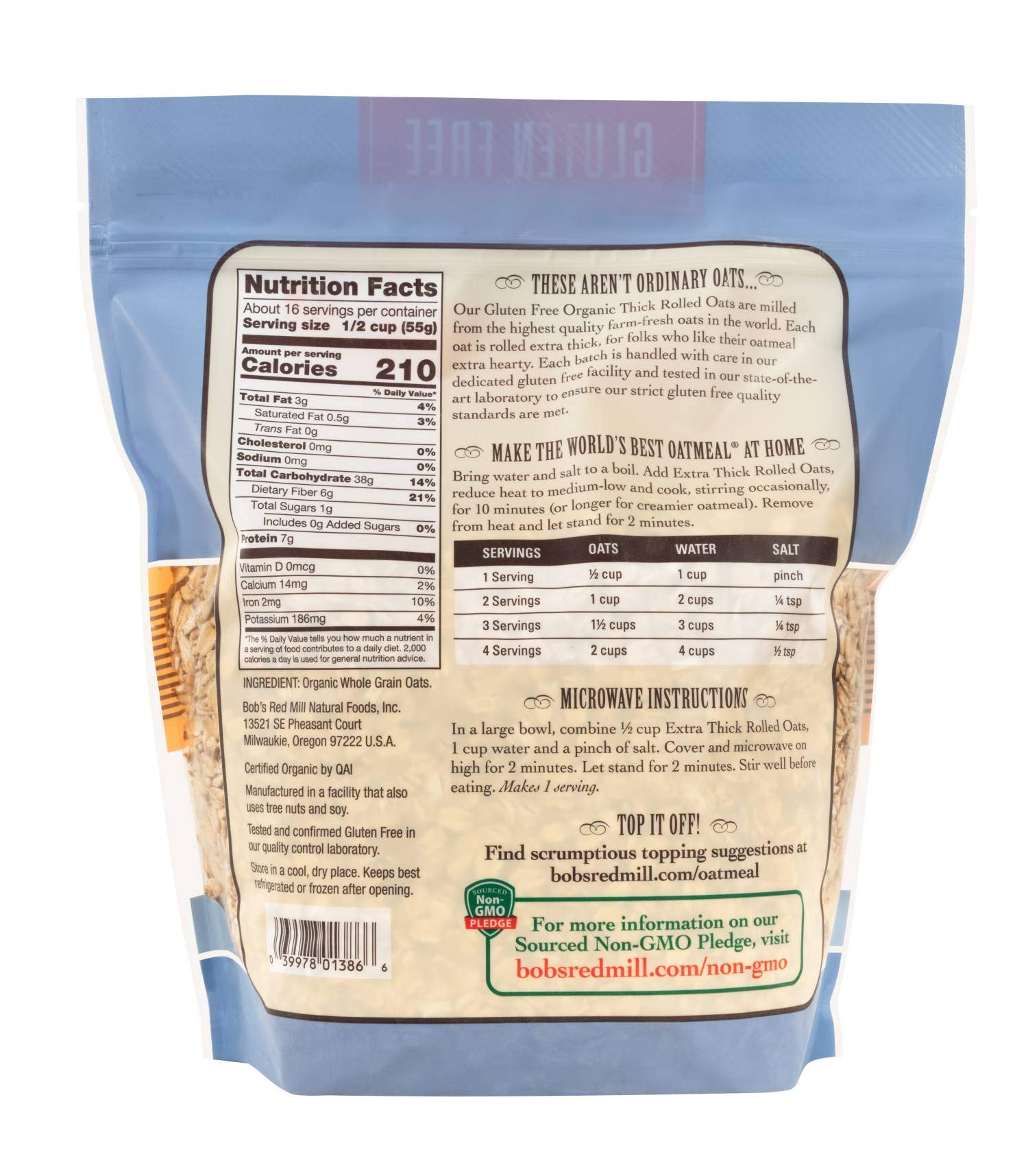 Bob'S Red Mill Makes Dreams Come True! This Is It, Where Gluten Free Finally Meets Organic In Our Extra Thick Rolled Oats! These Whole Grain Oats Are Lightly Toasted And Rolled Thick For An Extra Chewy Texture. Some People With Celiac Disease Or Gluten Intolerance May Not Be Able To Tolerate Even The Purest Of Oats, So Talk To Your Doctor If You Are Unsure. Like All Of Our Gluten Free-Labeled Products, This Product Is Produced In A Dedicated Gluten Free Facility And Is R5-Elisa Tested To Confirm Its Gluten Free Status. Certified Organic By Qai.