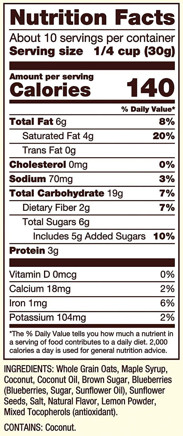 LEMON BLUEBERRY: We pan-bake whole grain oats, real maple syrup, coconut, lemon and blueberries to crispy, golden perfection