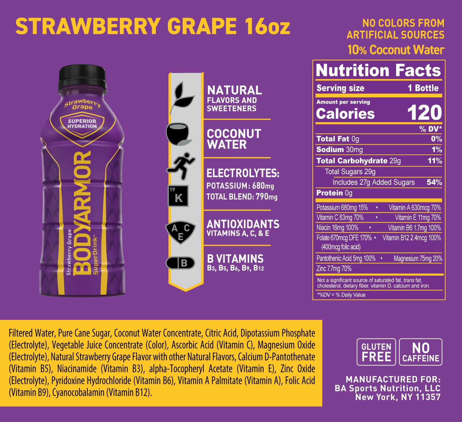 BODYARMOR is the sports drink for todays athlete, providing Superior Hydration by combining natural flavors & sweeteners, no colors from artificial sources and potassium-packed electrolytes.