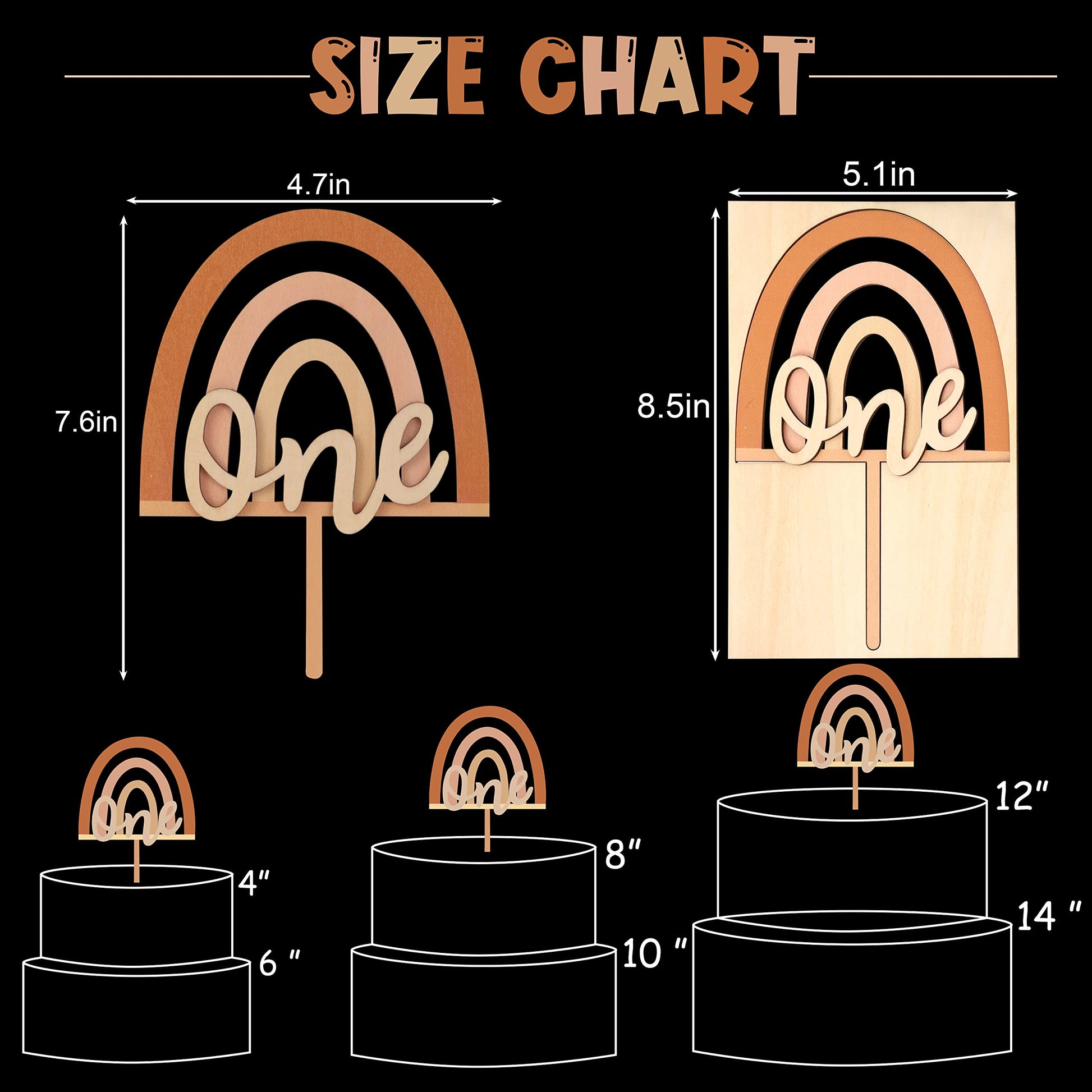 Q: What size is the Boho Rainbow Cake Topper?A: The cake topper measures approximately 4.7 inches in length and 0.01 inches in width, making it a perfect fit for standard-sized birthday cakes.