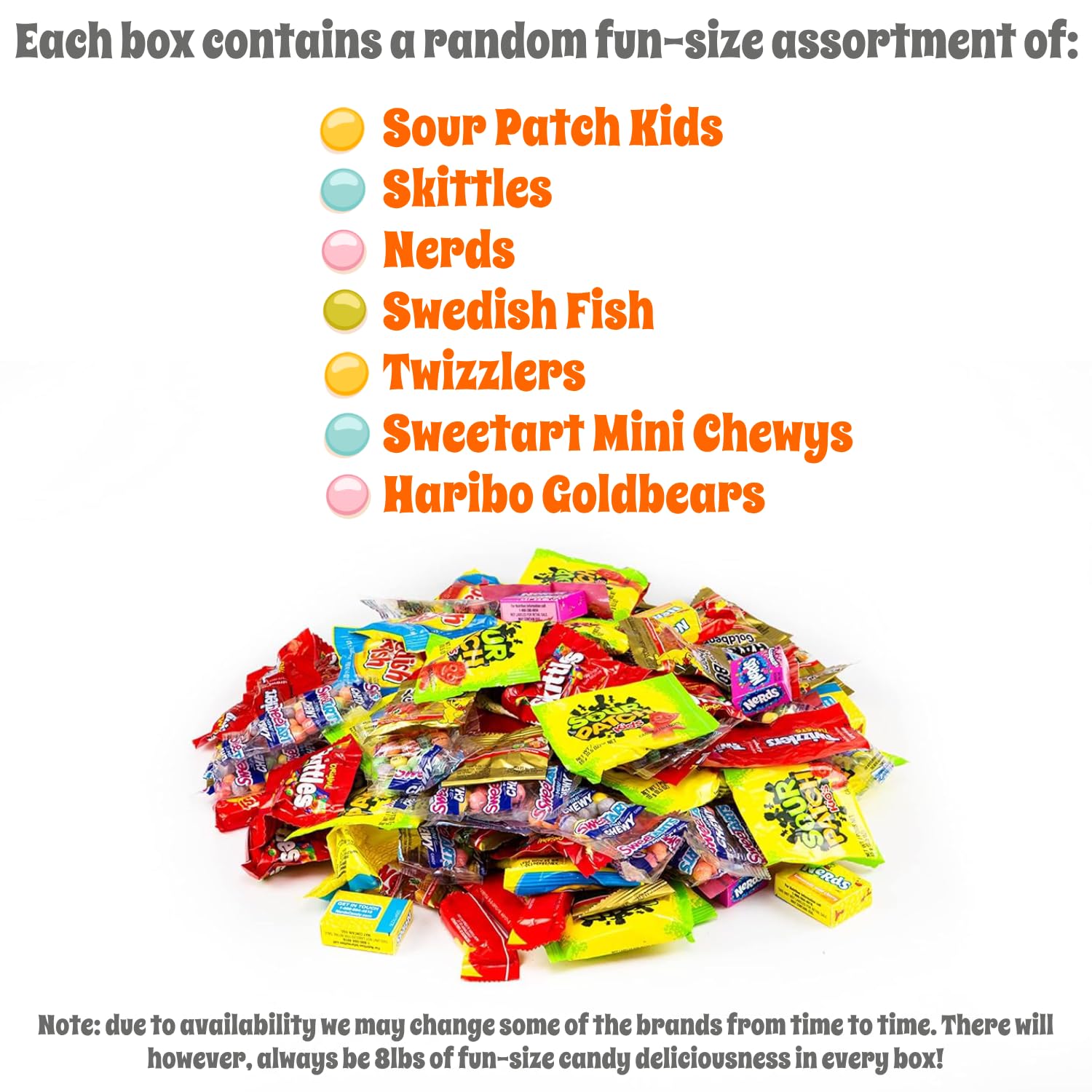 Bulk Fun Size Candy Sweetly Bulk Mixthis Wonderful Bulk Buy Box Of Halloween Candy Goodies Is Filled To The Brim With Delicious And Easy-To-Snack-On Chocolate For Any Occasion! This Is One Of Our Best Mixtures That We Offer!&Nbsp;So Many Delicious Treats Are Stored In This Box - You Can'T Go Wrong With Getting This To Devour Yourself, Or To Share With Other People! If You Or Your Loved Ones Love Candy Just As Much As We Do, Then This Is The Box For You!&Nbsp;What'S In The Box?This Box Contains So Many Delicious Treats That Everybody Will Find Their Own Fun Sized Favorite In Here. There Is Such A Wide Variety Is Stored In This Box. The Box Itself Is Filled With A Random Assortment Of Candy That Weighs 8Lbs!&Nbsp;