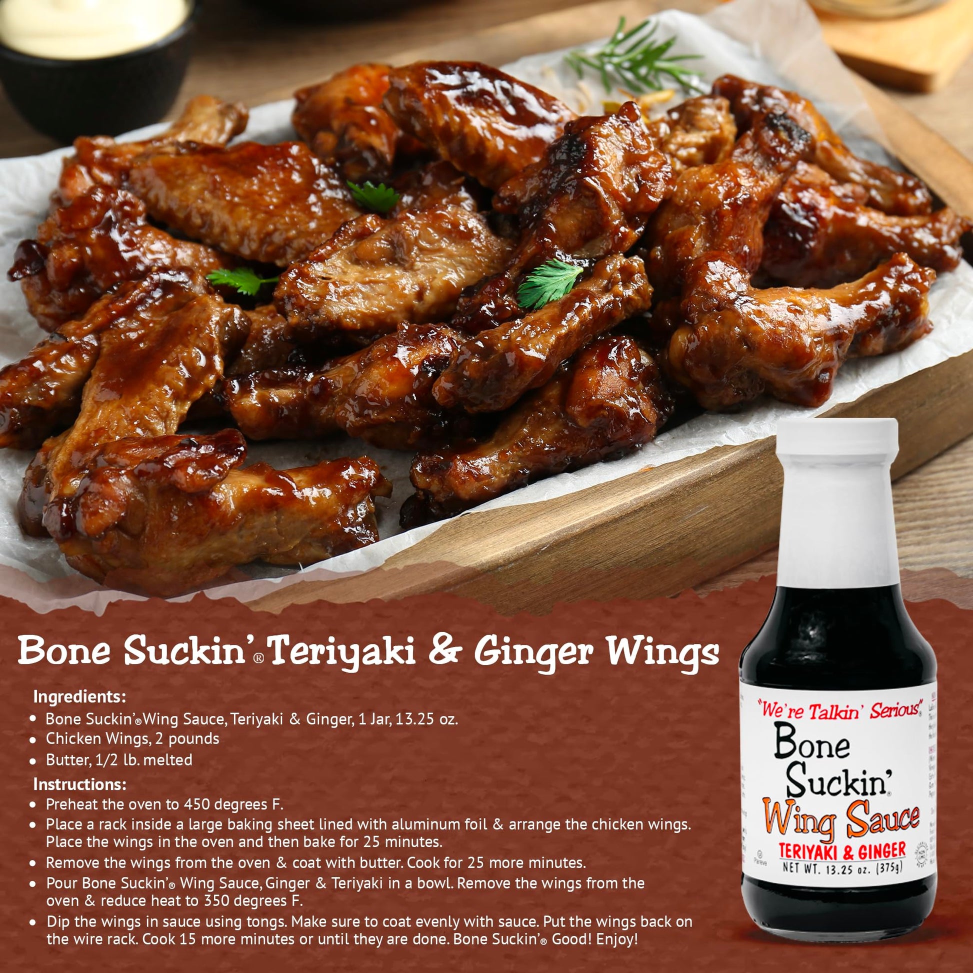 Authentic Teriyaki & Ginger Blend: Infuse your chicken wings with the perfect balance of zesty ginger and the smooth richness of Tamari in Bone Suckin Wing Sauce, Teriyaki & Ginger. Elevate your wing game with this exotic and flavorful combination that guarantees a crowd-pleasing experience. | GINGER TERIYAKI & GARLIC INFUSION FOR EXTRA FLAVOR: Experience extra layers of amazing taste and aromas in the Bone Suckin Teriyaki & Ginger Wing Sauce coming from the subtle hint of Garlic blended with Ginger & Tamari Soy Sauce. It s a flavorful addition that elevates the Teriyaki style, adding a touch of aromatic elegance to your culinary creations. | Picky Eater Approved: Tired of searching for the ideal chicken wing sauce for selective taste buds? Look no further. Bone Suckin Wing Sauce, Teriyaki & Ginger, is crafted to please even the pickiest eaters. Become the hero of your barbecue, ensuring you finish first in compliments every time. | PURE GOODNESS, NO COMPROMISES: Indulge guilt-free with Bone Suckin Sauce, Made in the USA with flavor crafted with your well-being in mind. Non-GMO, Gluten-Free, Kosher and has No High Fructose Corn Syrup - a wholesome choice for your culinary creations.