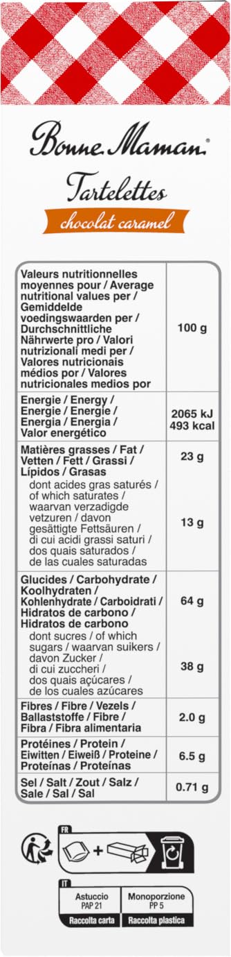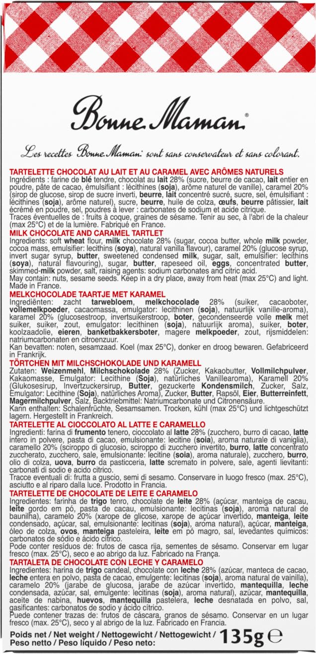 Indulge In The Exquisite Taste Of Bonne Maman Milk Chocolate Caramel Tartelettes, A Delightful French Pastry That Combines A Crisp Buttery Biscuit Base With A Luscious Layer Of Smooth Caramel, All Topped With Rich Milk Chocolate. Each Tartelette Is Crafted With Simple, Natural Ingredients, Free From Artificial Flavors Or Preservatives, Ensuring An Authentic And High-Quality Treat. Individually Wrapped For Freshness, These 135G (4.76 Oz) Packs Are Perfect For Sharing, Gifting, Or Enjoying As A Luxurious Snack With Your Favorite Hot Beverage