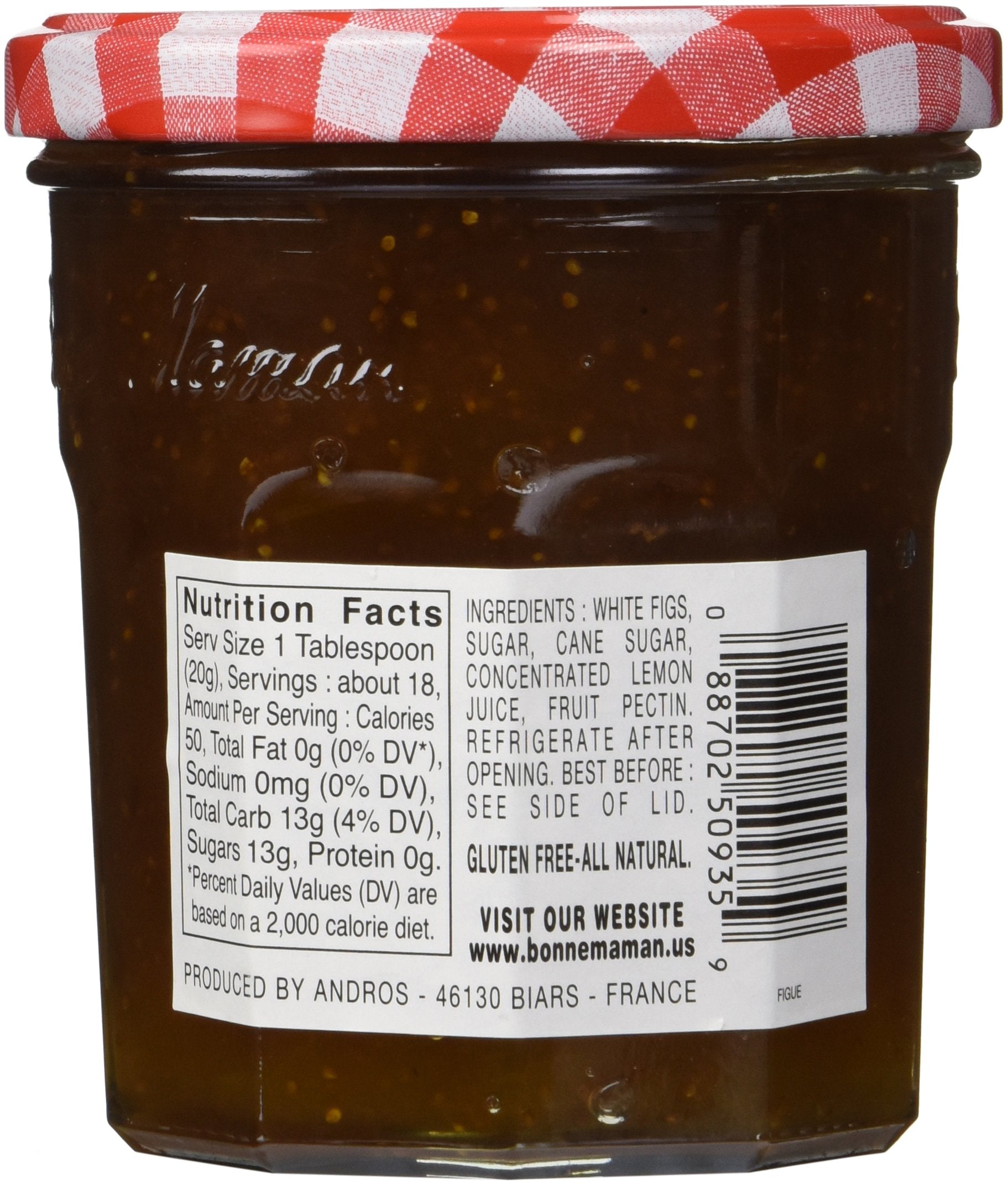 Q: What are the main ingredients in Bonne Maman Fig Preserves?A: Bonne Maman Fig Preserves primarily contain figs, sugar, and lemon juice, ensuring a natural and rich flavor without artificial additives.