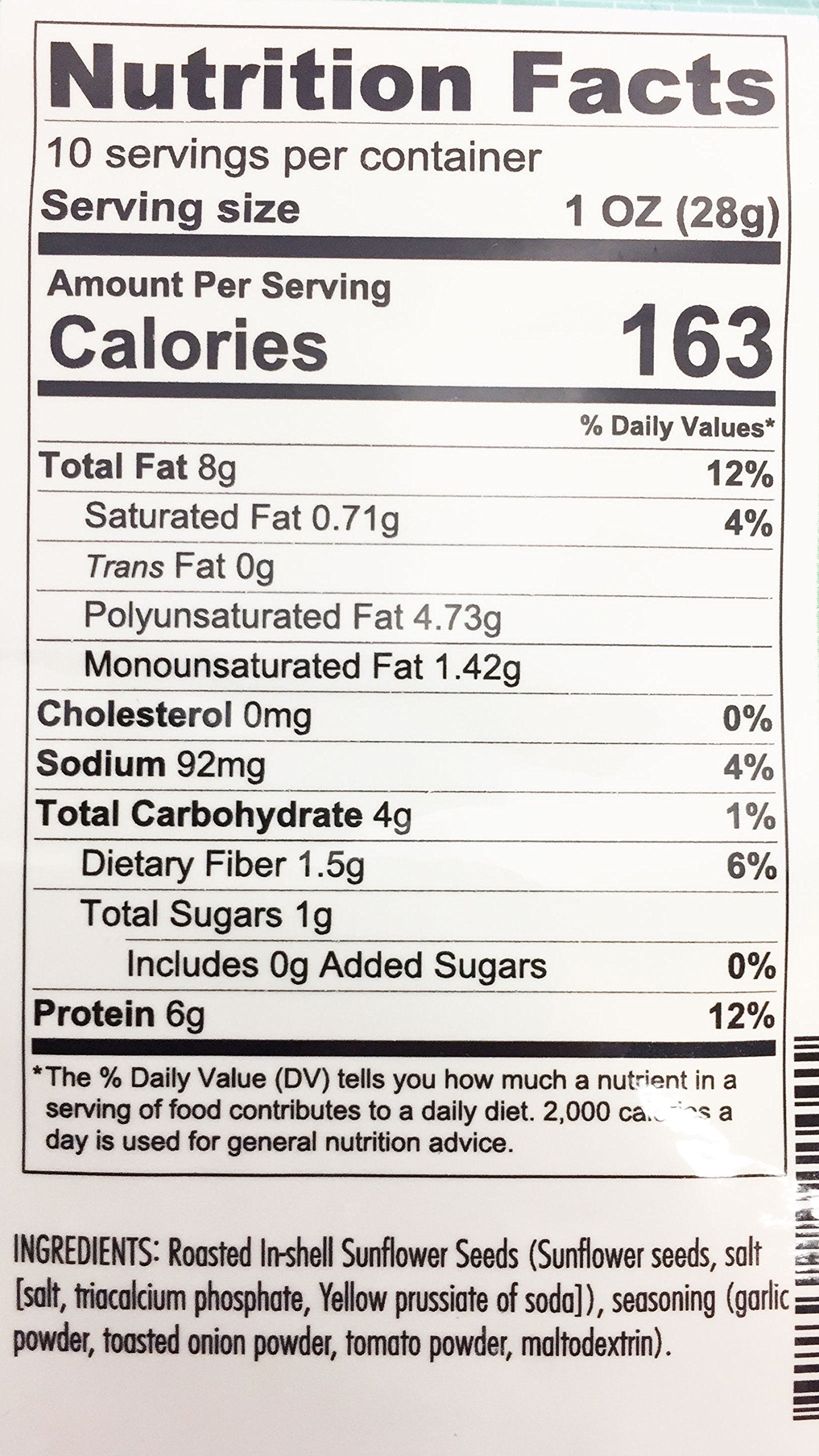 Q: What are the health benefits of Bricktown Goods Roasted Garlic Flavored Sunflower Seeds?A: Bricktown Goods Roasted Garlic Flavored Sunflower Seeds are a healthy snack option, packed with protein and free from added sugars and cholesterol. They provide energy and nutrients, making them ideal for outdoor activities or busy days.