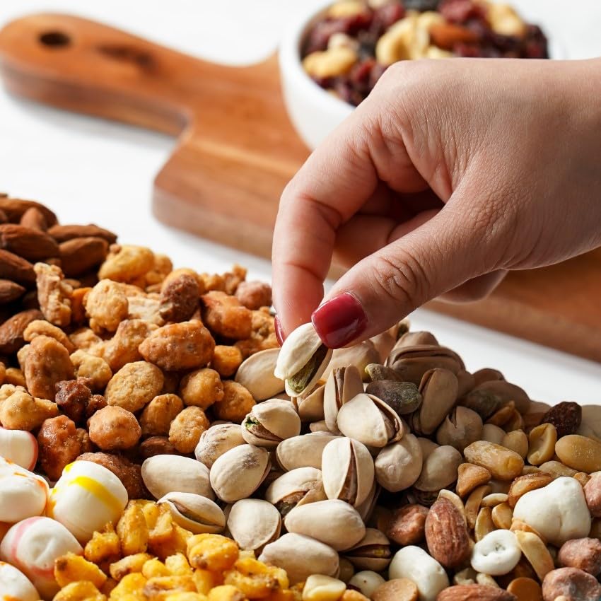 - Q: What types of snacks are included in the Broadway Basketeers Sympathy Nuts Gift Basket? A: The Broadway Basketeers Sympathy Nuts Gift Basket includes a delightful assortment of 10 individually wrapped snacks, featuring sweet and savory options such as creme brulee trail mix, cinnamon peanuts, toasted corn nuts, butter toffee mixed nuts, and berry cherry nut mix.