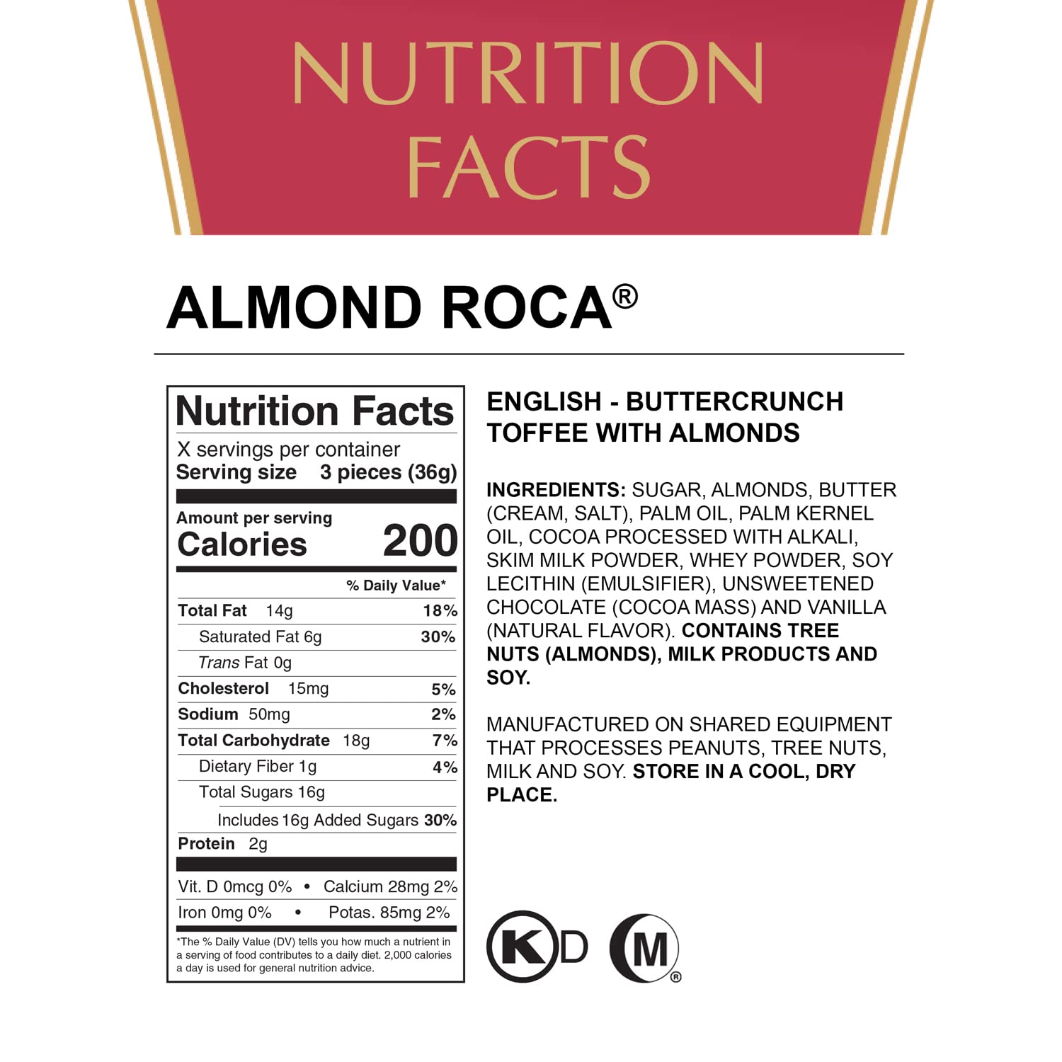 Q: Is Almond ROCA gluten-free and kosher?A: Yes, Almond ROCA is a gluten-free and kosher snack, making it an excellent choice for those with dietary restrictions.