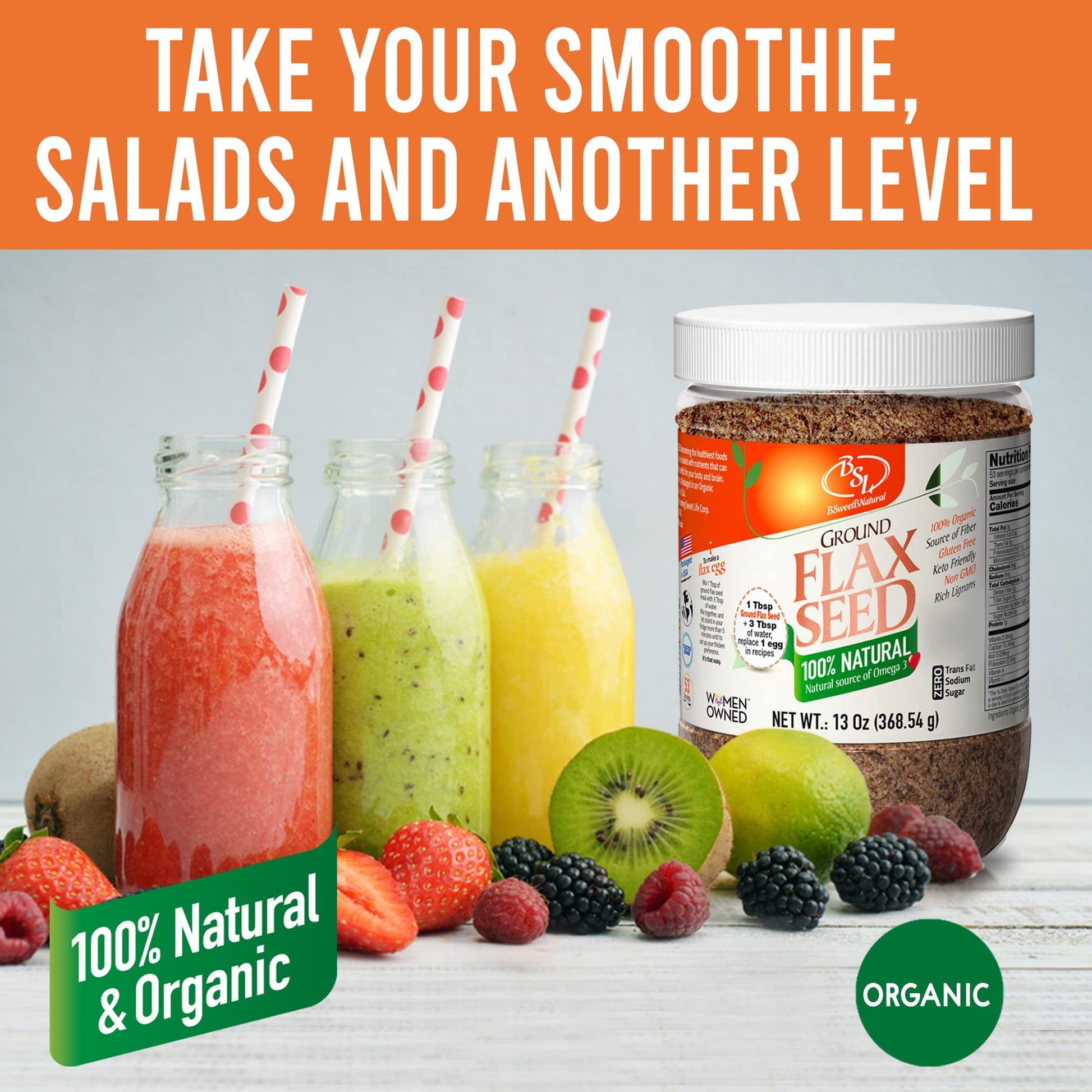 BSL BSweetBNatural Organic Ground Flax Seeds are an excellent choice for health-conscious individuals, vegans, or anyone seeking to enhance their meals with nutritious ingredients. Incorporate these seeds into your daily routine for an easy way to support a balanced diet and enjoy the numerous benefits of this superfood.