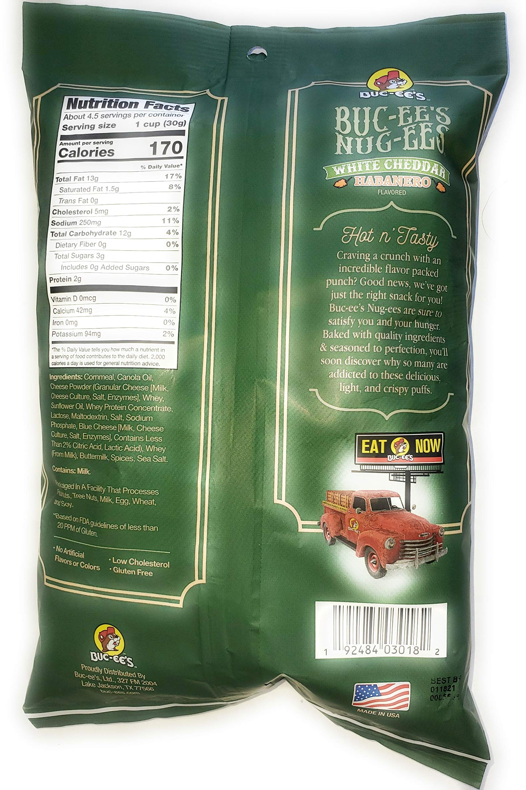 Q: What are Buc-ee's Nug-ees?A: Buc-ee's Nug-ees are a unique snack made from sweet corn puffs coated in a savory White Cheddar Habanero flavored powder. They are a delicious twist on the traditional Beaver Nuggets and are perfect for those who enjoy a flavorful snack.