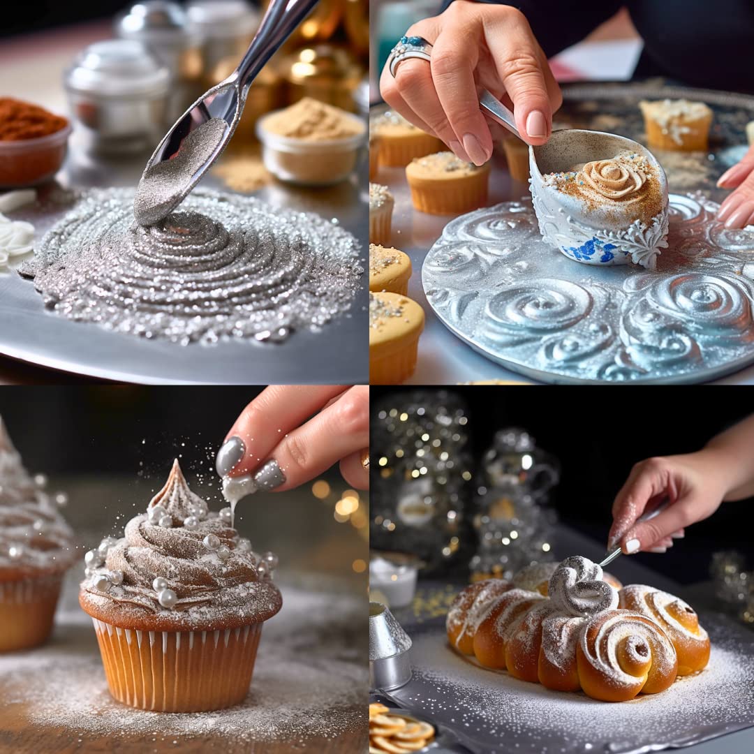 Q: How can I use the Silver Luster Dust in my baking?A: You can use the Silver Luster Dust by simply sprinkling it directly onto the surface you wish to decorate. It can be applied to cakes, cookies, cupcakes, and even drinks for a glamorous finish.
