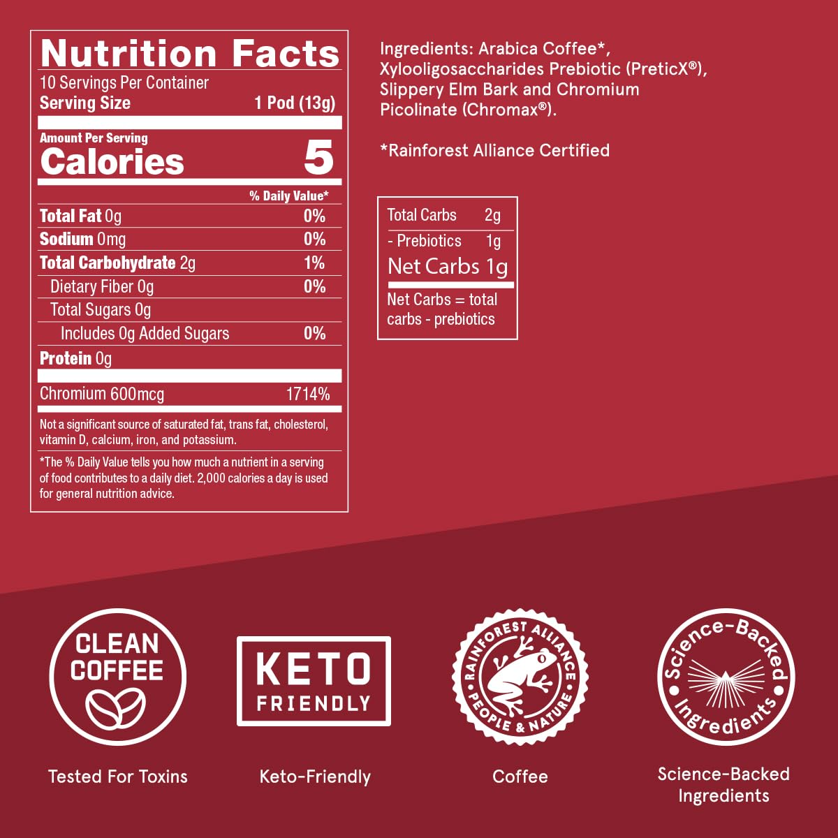 Q: What are Bulletproof The Maximizer Coffee Pods made of?A: Bulletproof The Maximizer Coffee Pods are made from expertly roasted coffee beans and enriched with a blend of prebiotics, slippery elm bark, and chromium picolinate, providing a unique coffee experience that supports energy, metabolism, and gut health.