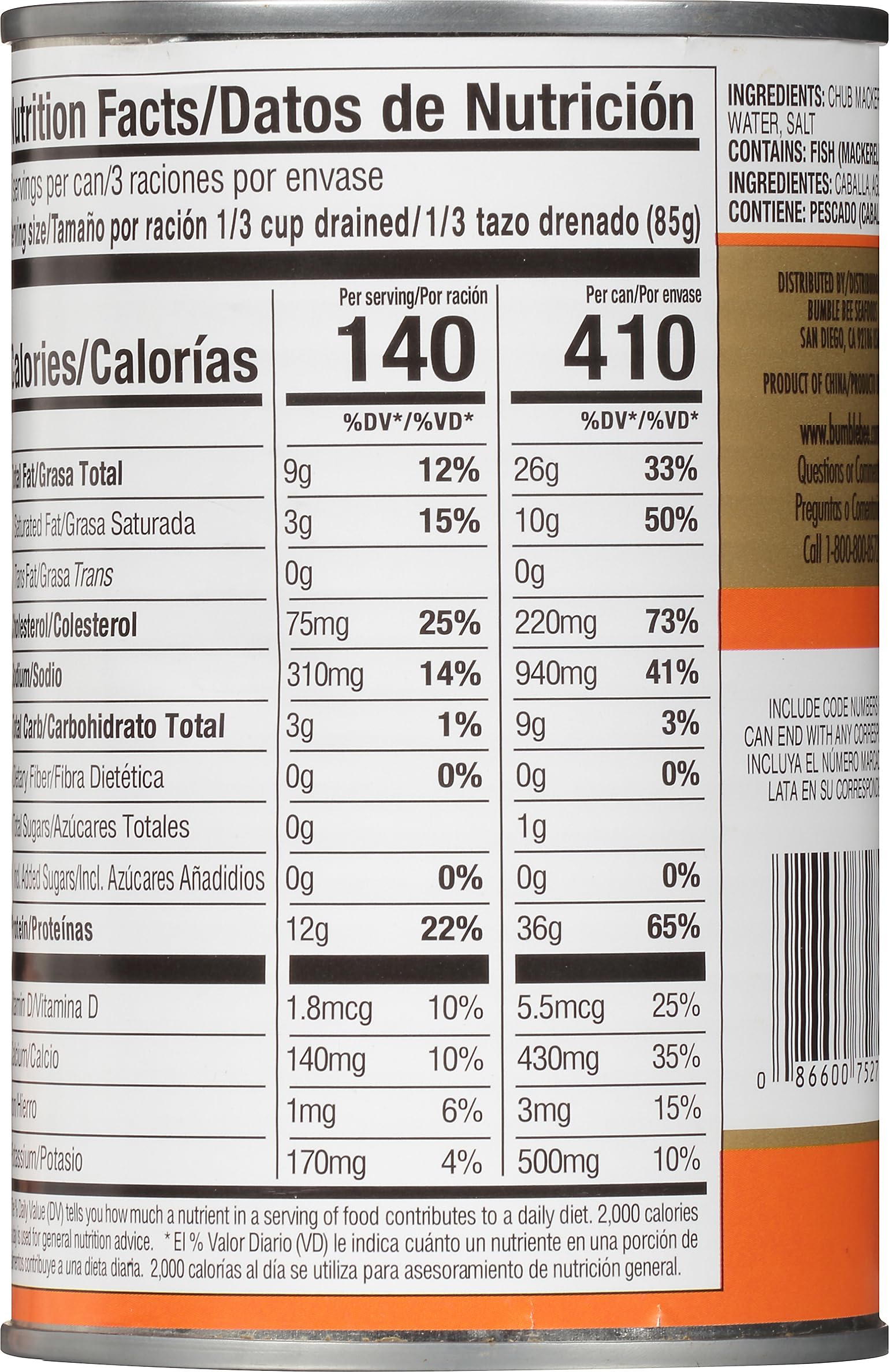 - Q: Is Bumble Bee Chub Mackerel gluten-free and suitable for special diets? A: Yes, Bumble Bee Chub Mackerel is gluten-free and made from simple ingredients: mackerel, water, and salt. It is ideal for those following gluten-free, Keto, Paleo, and Mediterranean diets.