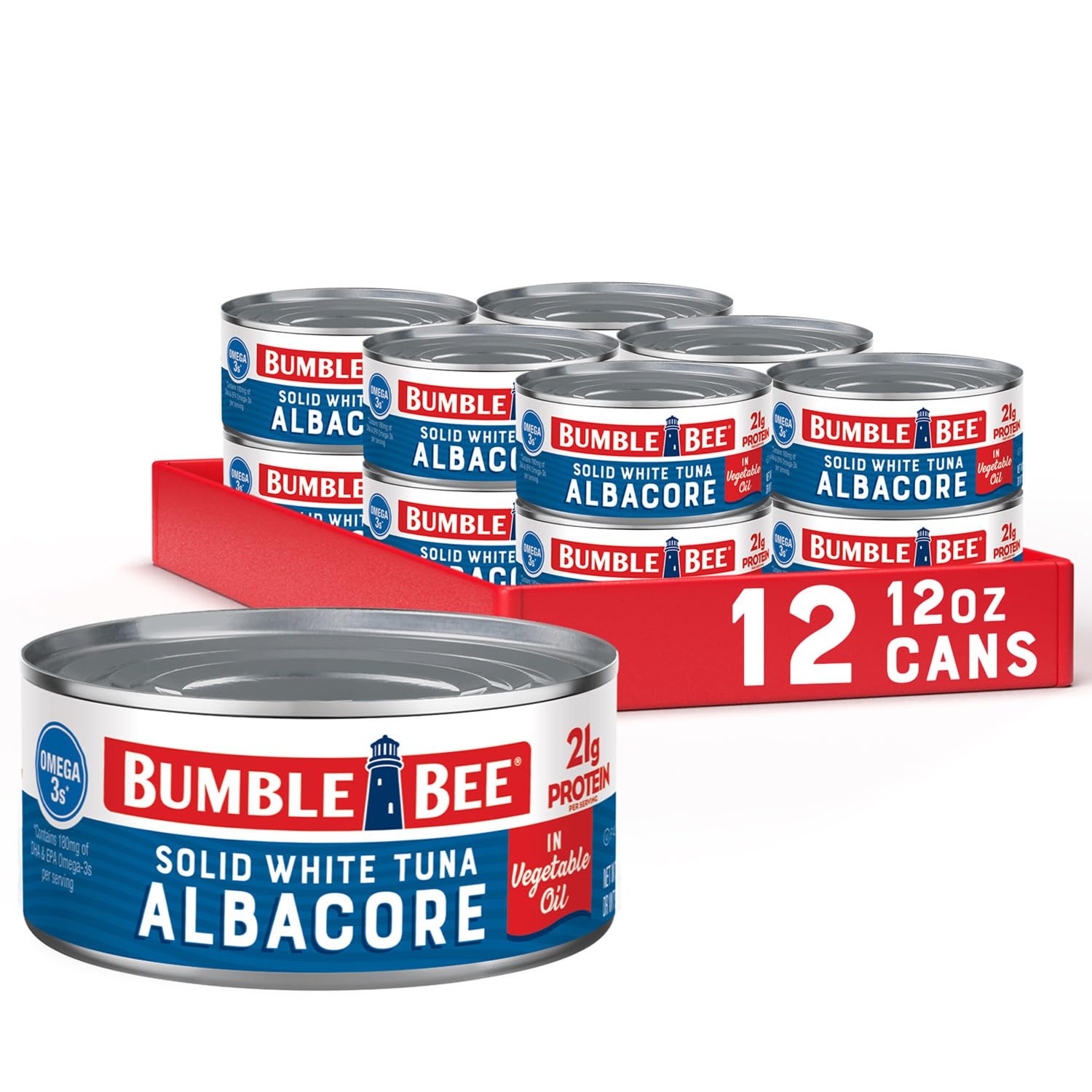 Bumble Bee Solid White Albacore Tuna In Oil, 12 Oz Can (Pack Of 12) - Wild Caught Tuna - 21G Protein Per Serving, High In Omega-3S - Non-Gmo Project Verified, Gluten Free, Kosher