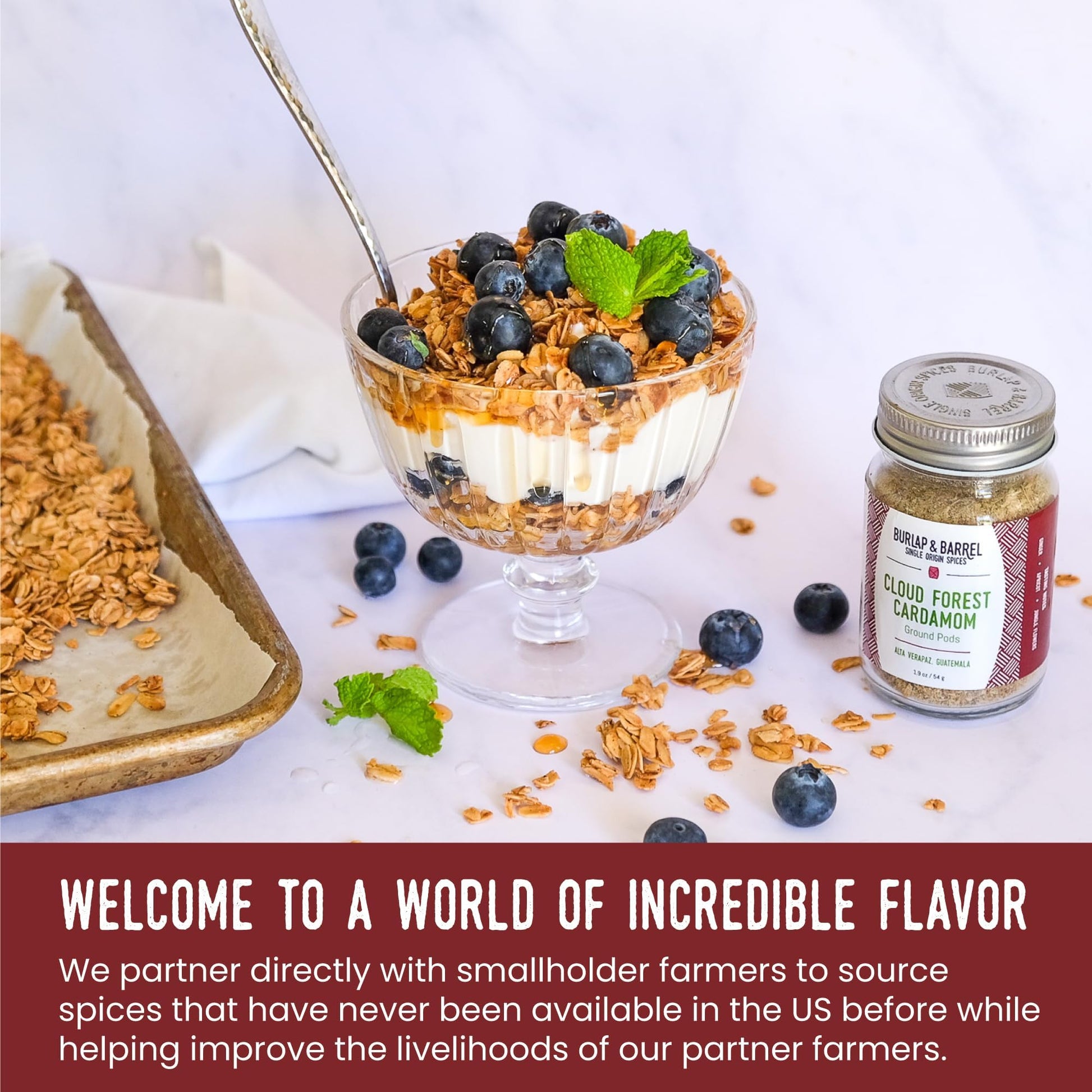 - Q: What are the flavor notes of Burlap & Barrel Cloud Forest Cardamom? A: Burlap & Barrel Cloud Forest Cardamom features a unique sweet and tart flavor profile, with notes reminiscent of summer fruits, fresh herbs, and a hint of menthol.