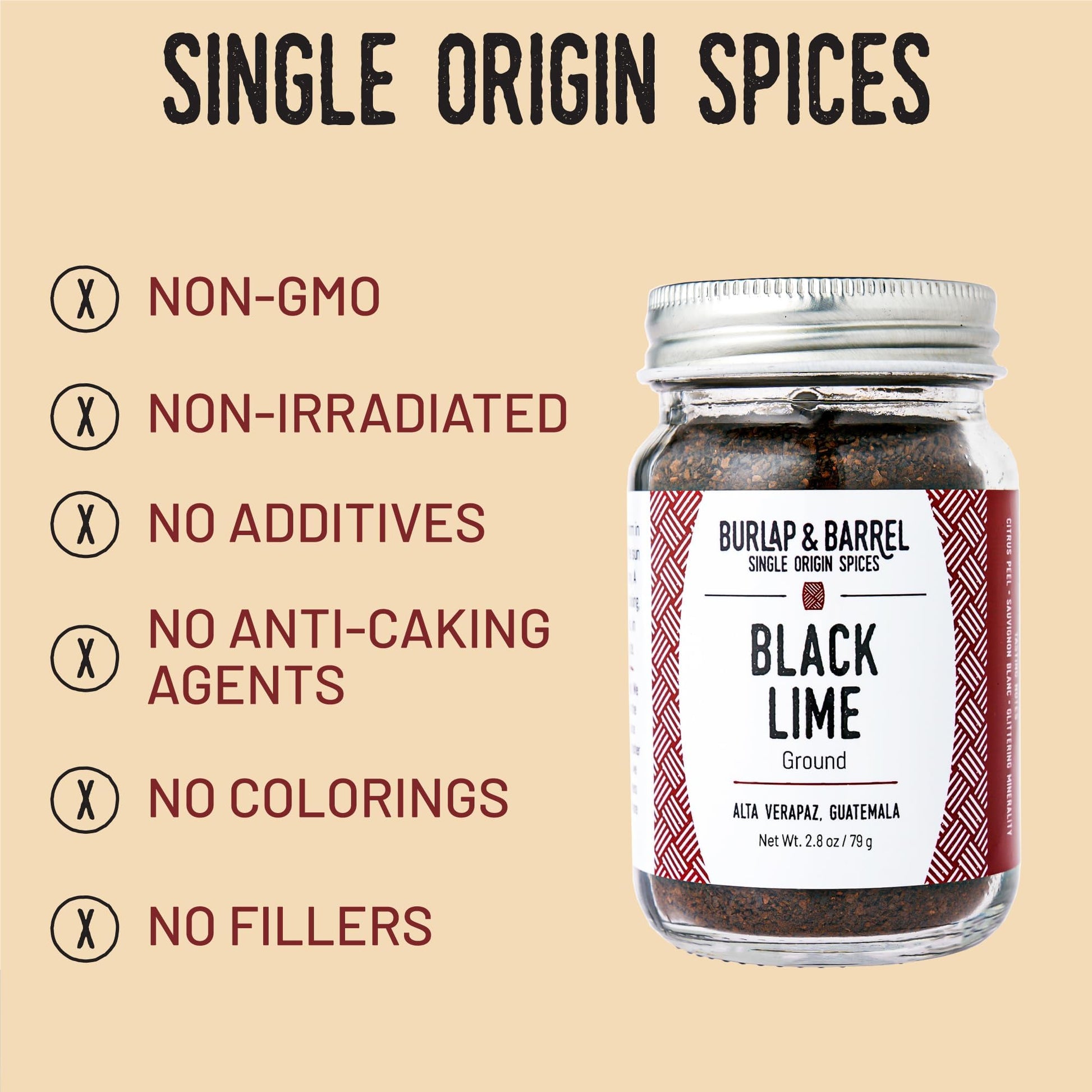 - Q: Is Burlap & Barrel's Ground Black Lime organic? A: While Burlap & Barrel's Ground Black Lime is non-GMO and free from additives, it is not specifically labeled as organic. The spices are sourced from farms that prioritize sustainable and natural farming practices.