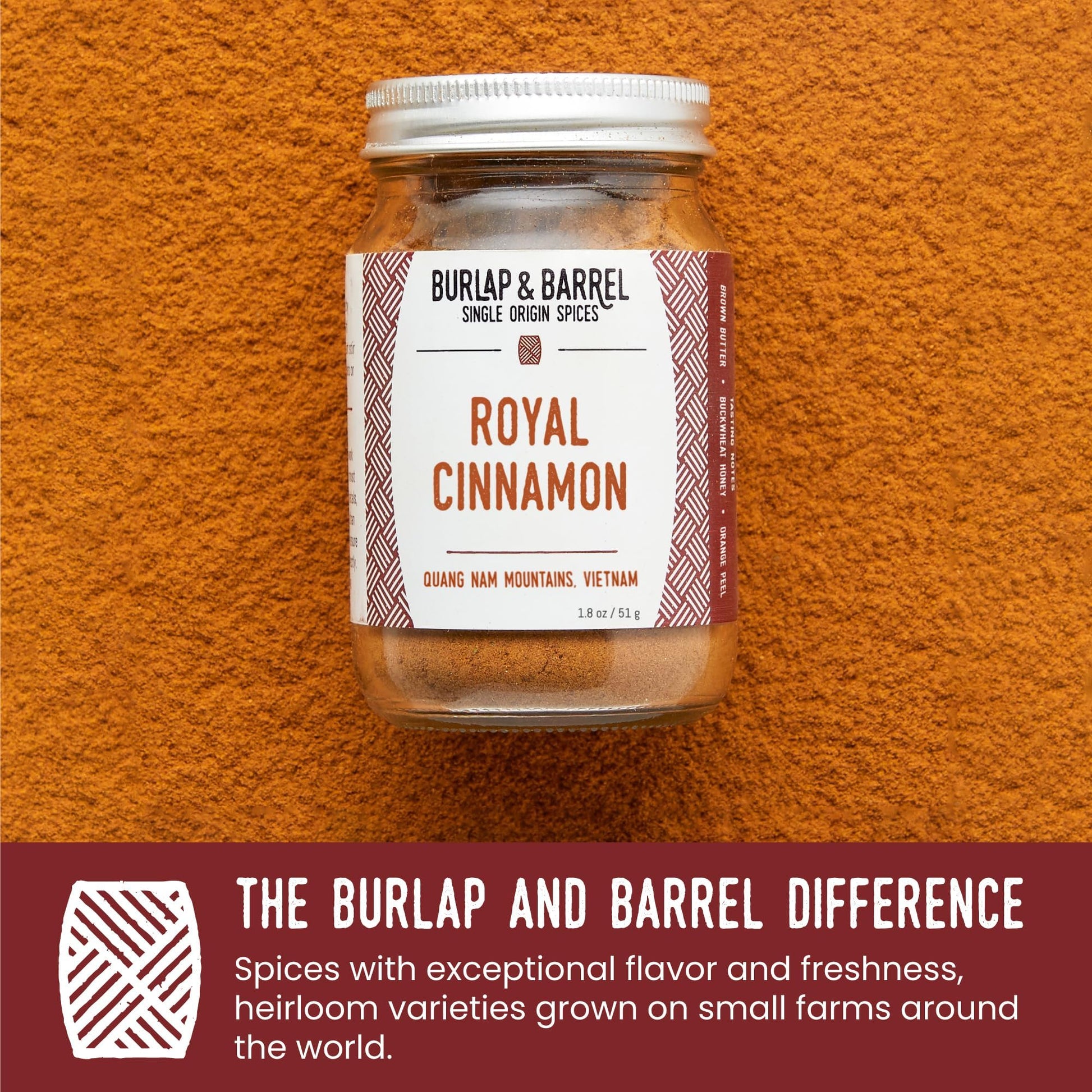 - Q: What is Burlap & Barrel Royal Cinnamon? A: Burlap & Barrel Royal Cinnamon is a high-quality spice sourced from Vietnam, known for its intense sweetness and spiciness. It is made from an heirloom variety of cinnamon that is rarely exported, providing a unique flavor experience.