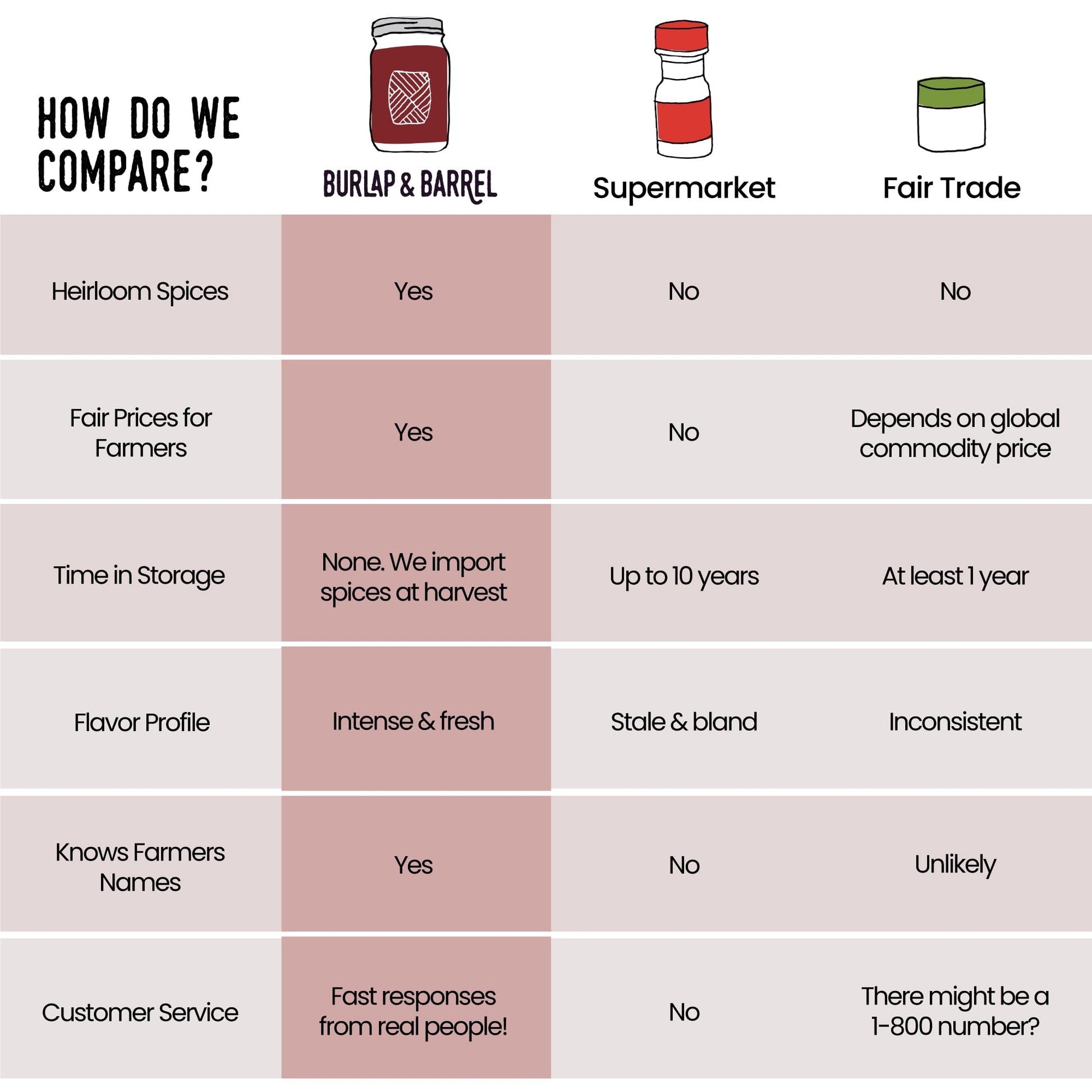 - Single-origin spices, promoting sustainable farming practices and fair trade.