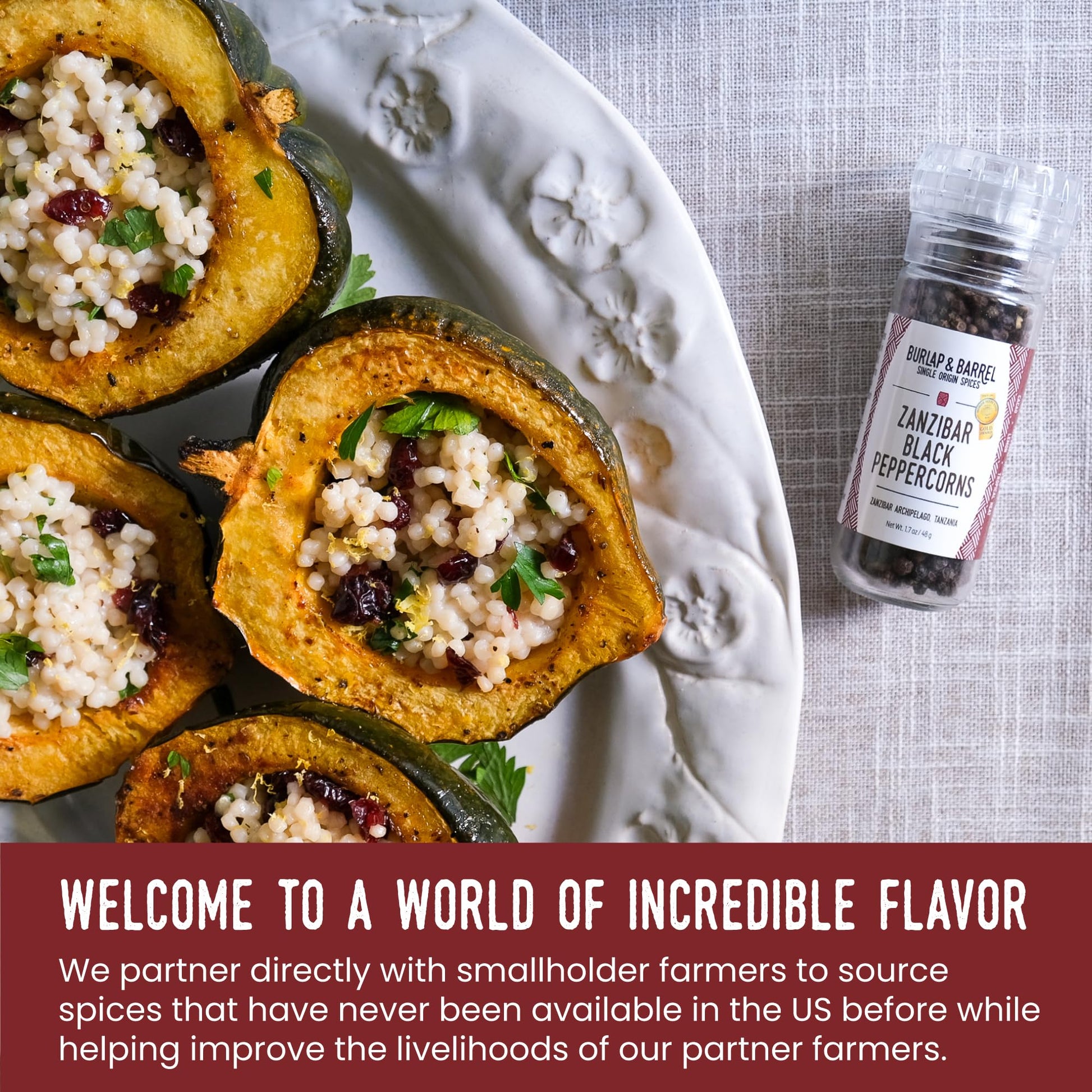 Welcome to a world of incredible flavor with Burlap & Barrels unique Zanzibar Black Peppercorns. Sourced directly from smallholder farms, these exceptional spices are designed for both professional chefs and home cooks who appreciate high-quality, flavorful ingredients.
