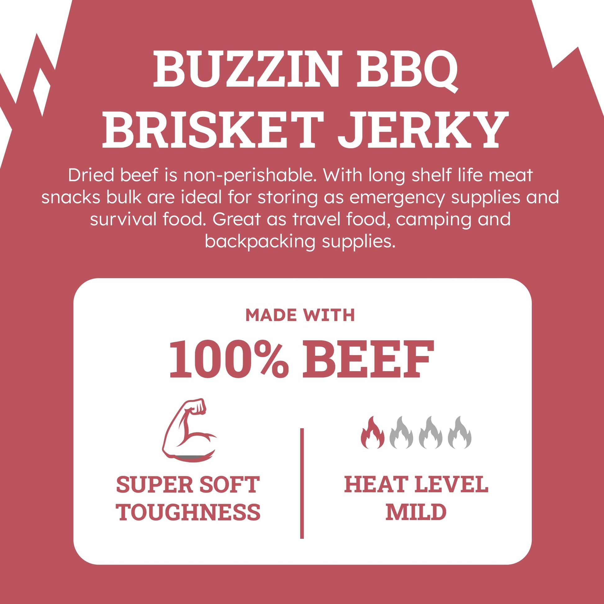 - Q: What makes Buzzin BBQ Brisket Jerky different from other jerky brands? A: Buzzin BBQ Brisket Jerky stands out due to its soft and tender texture, unlike many other brands that offer tough, chewy jerky. Our jerky is made from 100% real beef with no fillers, ensuring a melt-in-your-mouth experience packed with bold, smoky flavor.