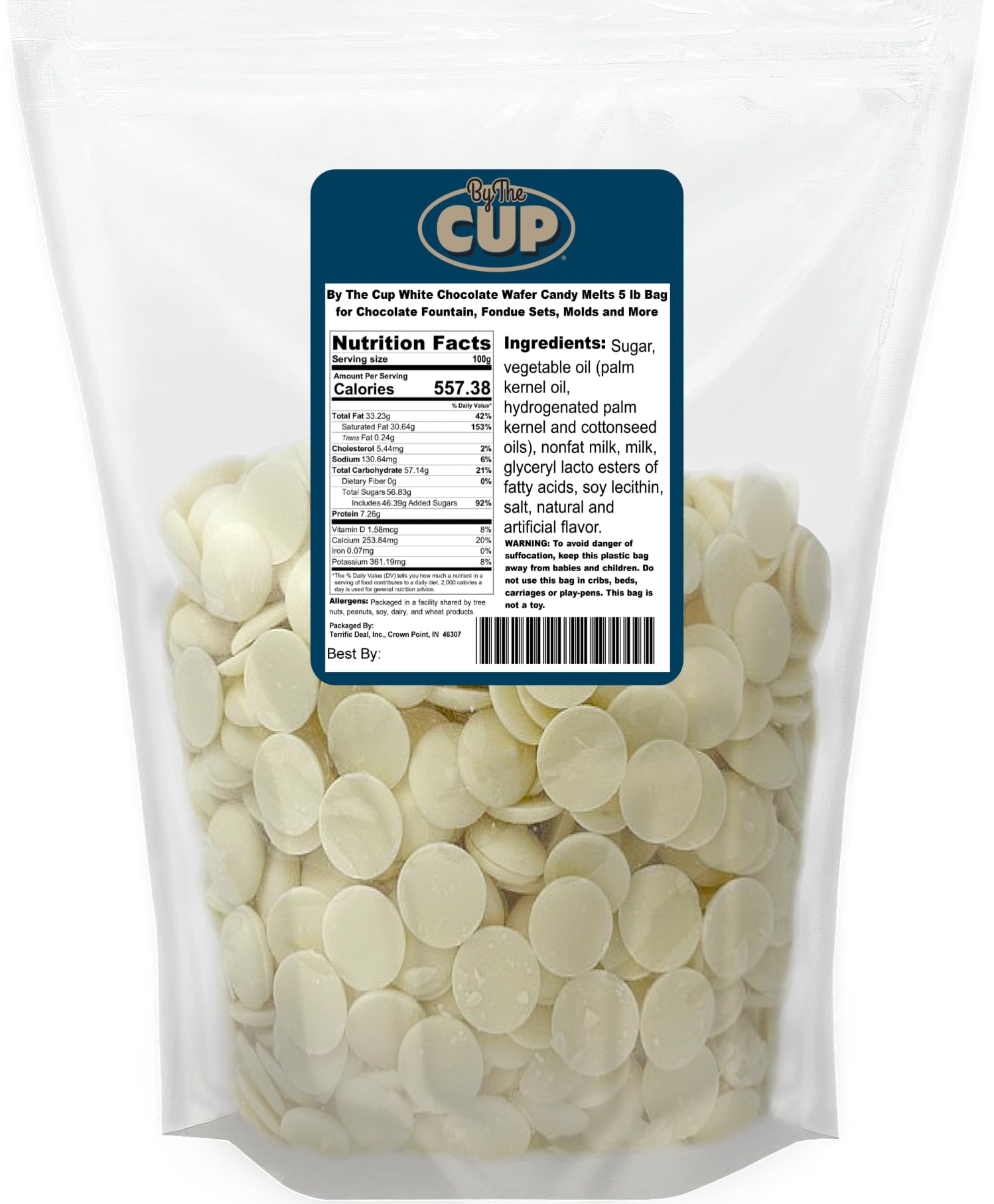 5 pound bag of By The Cup White Chocolate Coating Melting Wafers