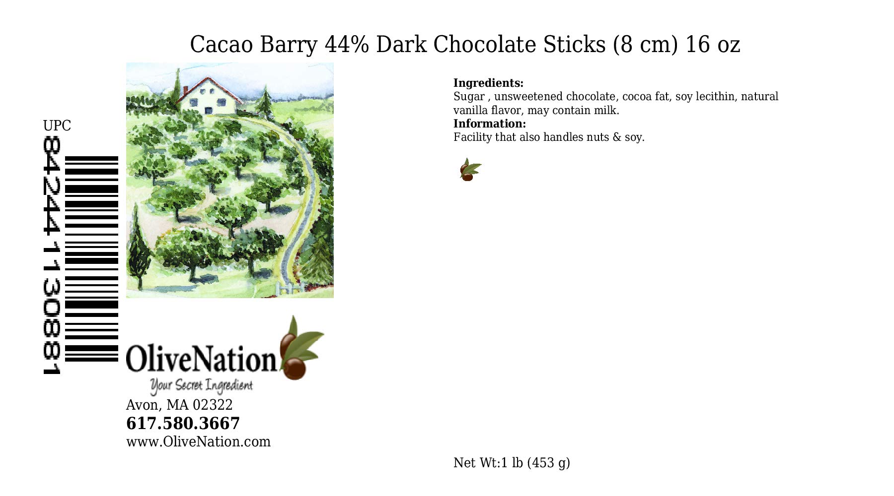 Q: What is the size and weight of the Cacao Barry Dark Chocolate Sticks package?A: The Cacao Barry 44% Dark Chocolate Sticks come in a convenient 16-ounce package, which is approximately 1 pound, making it easy to use for multiple baking projects.