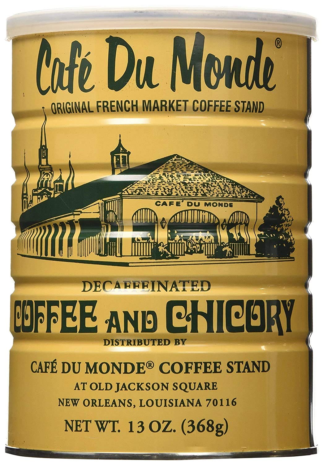 Cafe Du Monde Chicory Decaffeinated. This is the exclusive decaffeinated Coffee and Chicory blend served at CAFE DU MONDE the Original French Market Coffee Stand, serving Cafe Au Lait and Hot Beignets 24 hours a day, year round. Available in regular and decaffeinated, Chocolaty flavor perfect any time of day, Serve with your favorite pastry. We use an Ethyl Acetate process to decaffeinate the coffee used in our blend of Coffee and Chicory. Ethyl Acetate is a natural chemical found in many fruits. This is the exclusive decaffeinated Coffee and Chicory blend served at CAFE DU MONDE the Original French Market Coffee Stand, serving Cafe Au Lait and Hot Beignets 24 hours a day, year round.