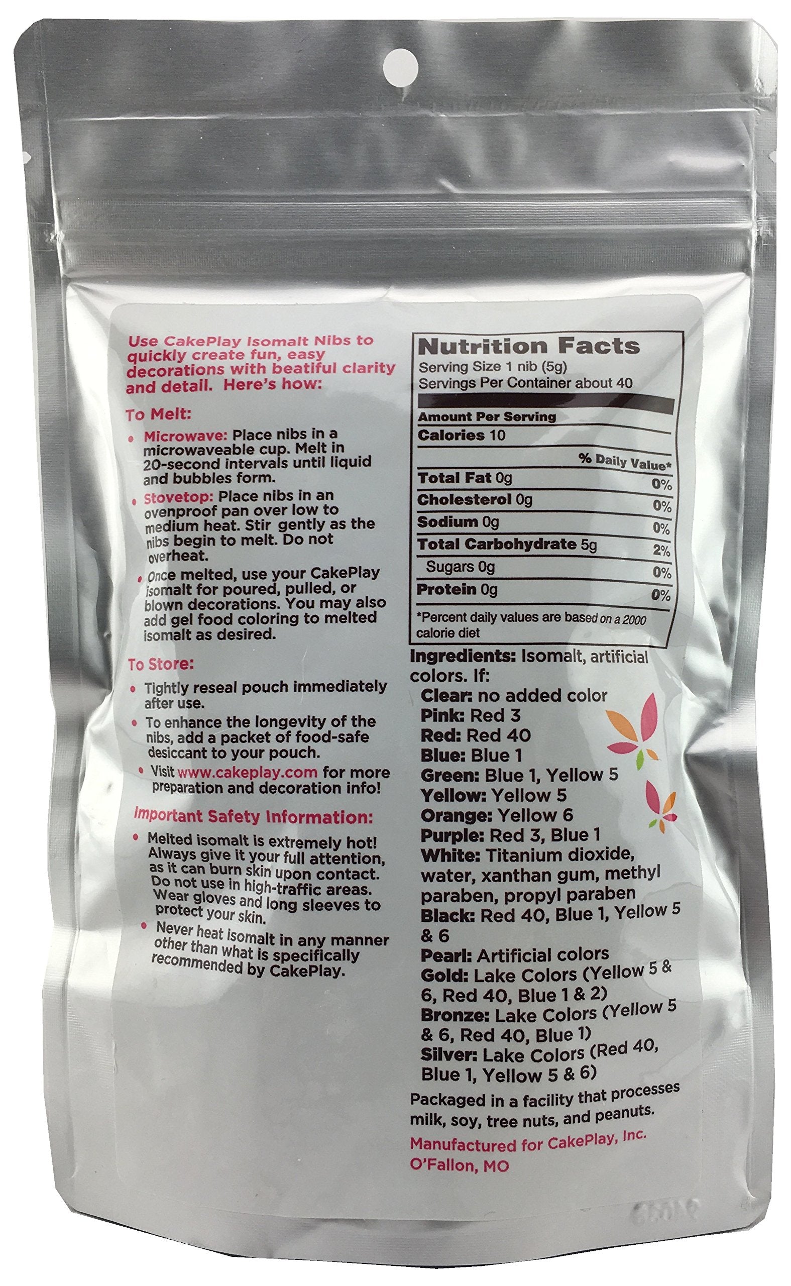 Isomalt by CakePlay in nib form, identical to the sticks in color, composition and net weight (7.0 oz / 198 g), but in a resealable pouch that offers better moisture protection. Made in a facility that processes peanuts.Isomalt is a versatile crystalline substance with many different uses and applications. It&rsquos derived from sucrose and preferred by pastry and cake professionals for its stability and usability. However, it&rsquos difficult to cook isomalt crystals on the stove and achieve the proper cooking and tempering conditions. This stovetop cooking method is also tedious and time consuming and frequently yields inconsistent or poor results. That&rsquos why CakePlay&rsquos pre-cooked Isomalt Sticks are such a great innovation. This unique isomalt can be melted in the microwave, making it easy to add sparkle and dimension to cakes. It&rsquos also ideal for creating free-standing sugar showpieces. CakePlay&rsquos Isomalt Sticks provide consistent high-quality performance time after time. This isomalt product lets you add a professional touch in just seconds.Isomalt is safe to eat and easy to use. Its clarity and color intensity make it ideal for crafting beautiful decorations that add amazing flair to your culinary creations. Use this adaptable substrate to create eye-catching 3-dimensional pieces for the center of a table or on a cake. Once melted, CakePlay&rsquos pre-cooked isomalt sticks can be molded, cast, pulled or blown&mdashanything you can imagine. This isomalt makes it easy to create toppers and decorations that enhance your customers&rsquo special-occasion cakes and pastries.
