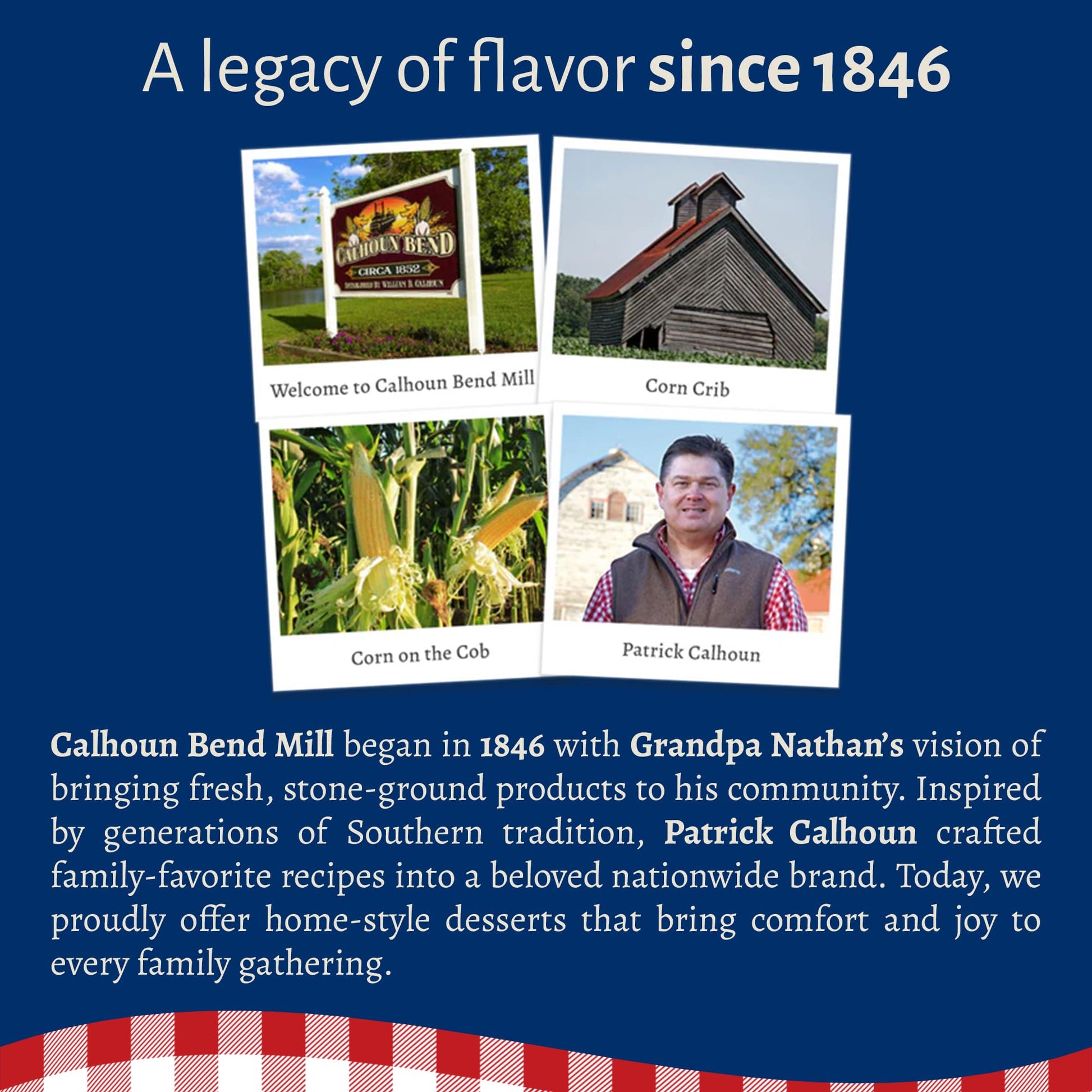 Craving Desserts That Are Both Easy And Indulgent&Nbsp;Create Golden, Bubbling Desserts Effortlessly With Calhoun Bend Mill Apple Crisp Mix. Perfect For Fresh Apples, Canned Filling, Or Fruit Mixes, Its Cinnamon-Spiced Streusel Topping Delivers Autumn Flavors In Every Bite. Ideal For Cozy Dinners Or Festive Gatherings, It'S Your Go-To For Easy, Crowd-Pleasing Treats.Southern Cooking Lovers Know The Crust Steals The Show In A Classic Cobbler, While The Fruit Filling Shines. This Cobbler Mix Blends Rich Peach Flavor With Premium Ingredients For A Buttery, Golden Crust That'S Perfectly Sweet And Versatile. Ideal For Family Dinners Or Festive Gatherings, This Peach Pie Filling Offers A Comforting, Homemade Taste.Calhoun Bend Mill Apple Crisp Mix Features:Bursting With Rich, Authentic Apple Flavormade With Premium-Quality, Thoughtfully Selected Ingredientsdelivers A Perfect Golden, Buttery Streusel Topping Every Timeeasy-To-Use Baking Mix Requiring Minimal Preparationpair With Fresh Peaches, Berries, Or Fruit Mixes For A Customized Dessert.Easy To Prepare In The Oven Or Microwave In Under 30 Minutes.Suitable For Beginners And Experienced Bakersversatile For Creating Traditional And Creative Dessertsperfect For Various Occasions From Casual Treats To Festive Gatheringsoffers A Comforting Homemade Taste In Every Bitecalhoun Bend Mill Peach Cobbler Mix Features:Bursting With Rich, Authentic Peach Flavormade With Premium-Quality, Thoughtfully Selected Ingredientsdelivers A Perfect Golden, Buttery Crust Every Timeeasy-To-Use Baking Mix Requiring Minimal Preparationsuitable For Beginners And Experienced Bakersversatile For Creating Traditional And Creative Dessertsperfect For Various Occasions From Casual Treats To Festive Gatheringsoffers A Comforting Homemade Taste In Every Bitewho Are We: At Calhoun Bend Mill, We Are All About Blending Tradition With Innovation. It All Started In 1846 When Grandpa Nathan Built Monterey, Louisianas First Grist Mill, Paving The Way For Generations Of Southern Cooking. Inspired By His Legacy, Patrick Calhoun Turned Family Recipes Into A Line Of Stone-Ground Cornmeal And Classic Southern Favorites. Now, We Are Here To Bring The Taste Of Home Straight To Your Table.